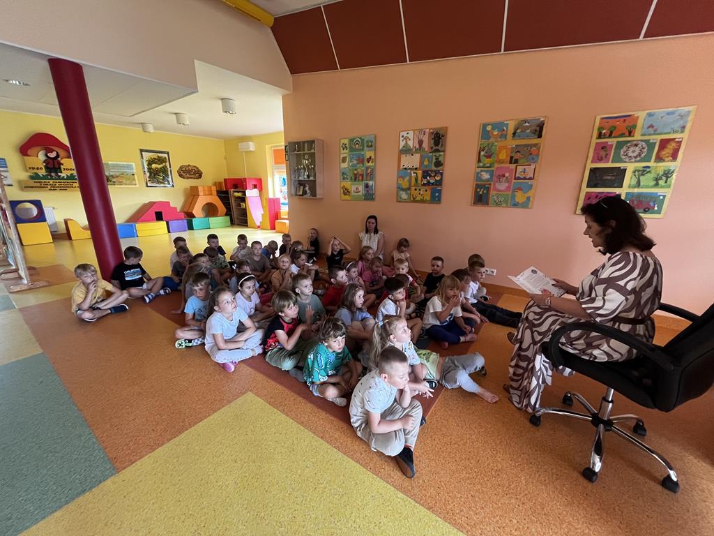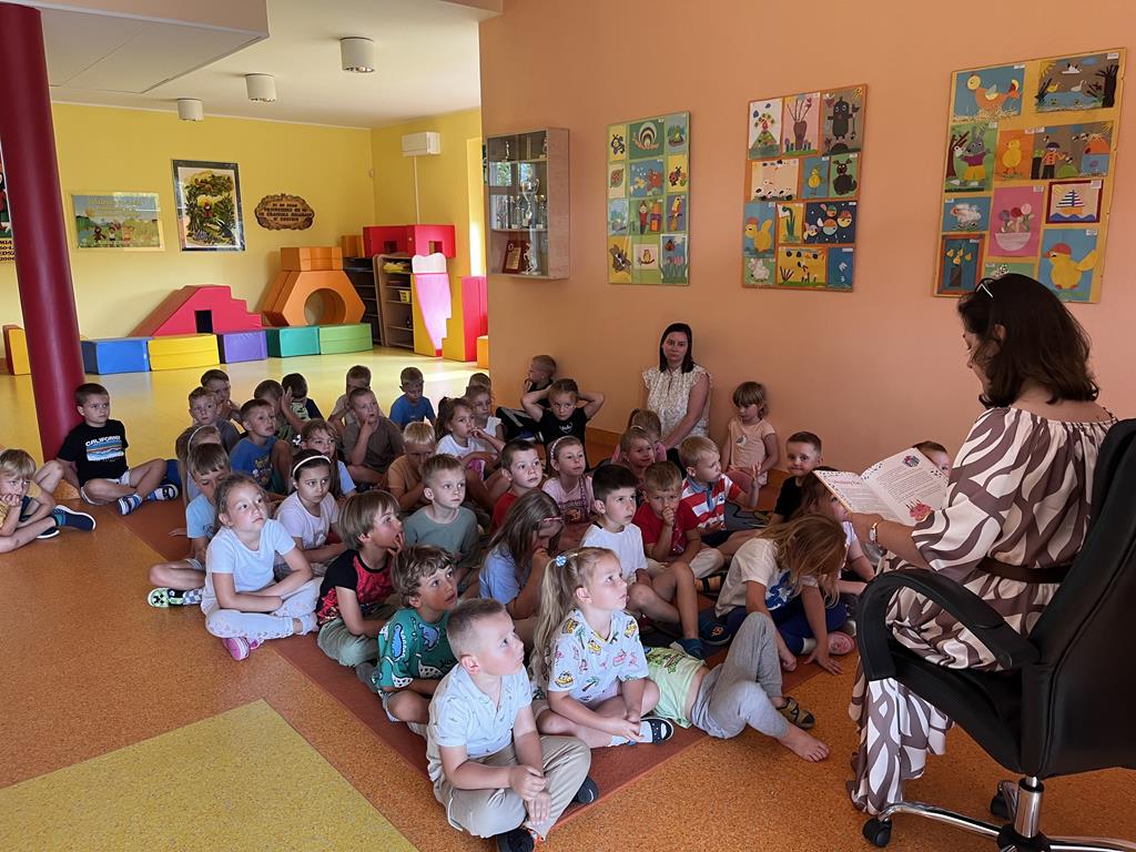 W dniu 8 września, w ramach akcji Narodowego Czytania pani dyrektor Danuta Kaliszewska przeczytała dzieciom bajkę pt.: "Urodziny Ewy". Przedszkolaki z dużym zainteresowaniem słuchały opowieści, a następnie rozmawiały o zachowaniu bohaterki. Spotkanie było okazją do wspólnego przeżywania literatury, rozwijania wyobraźni i kształtowania właściwych postaw.