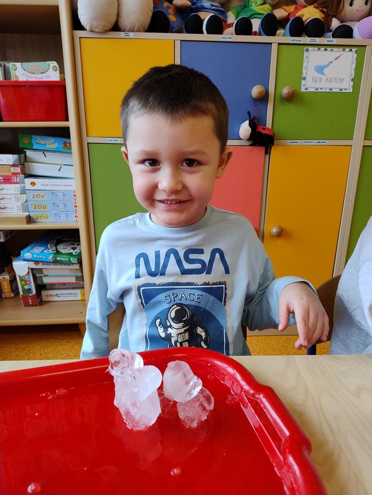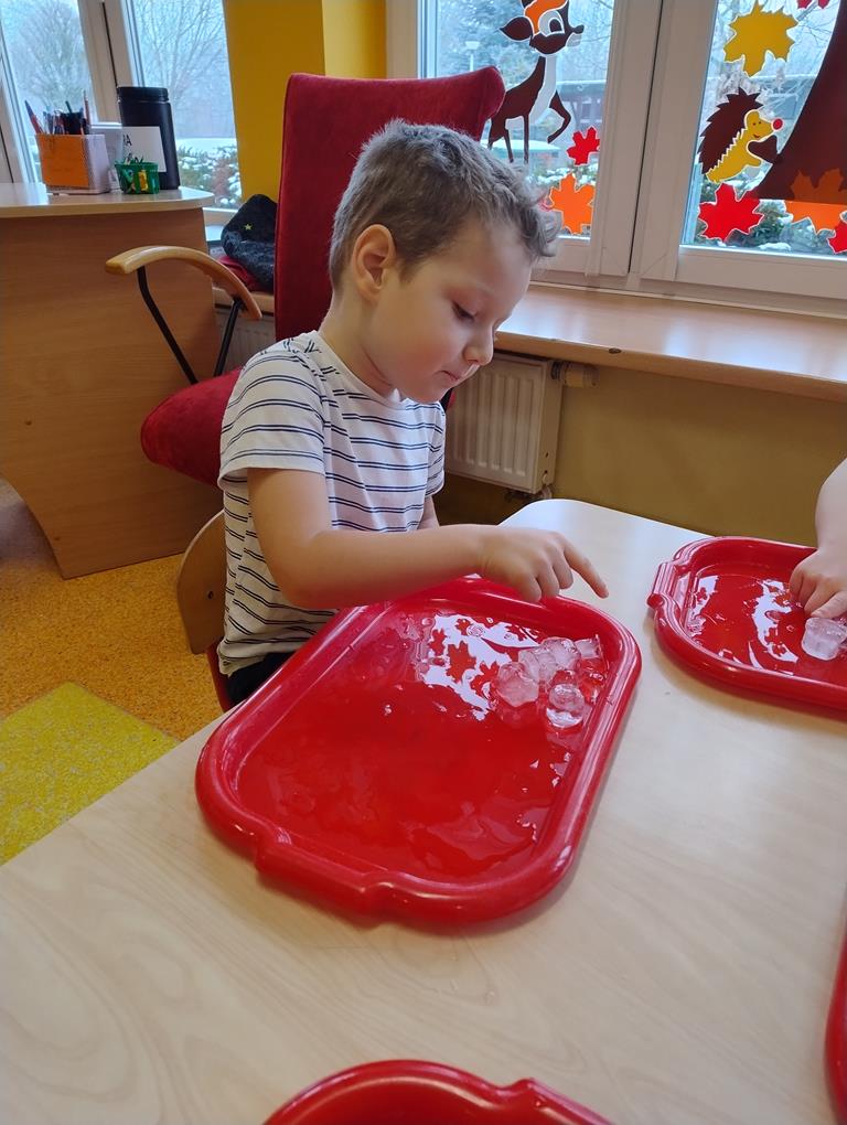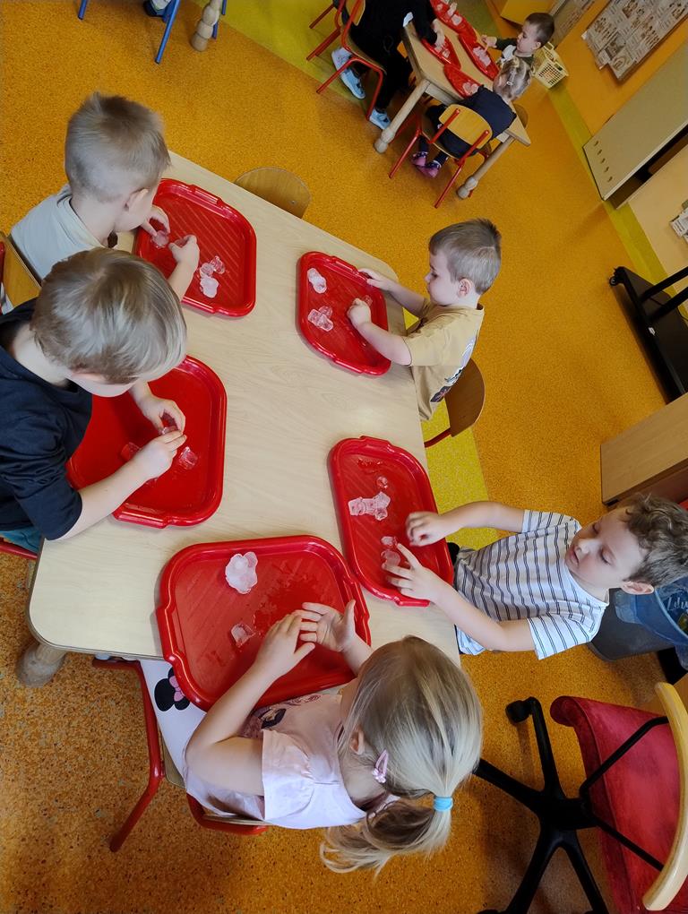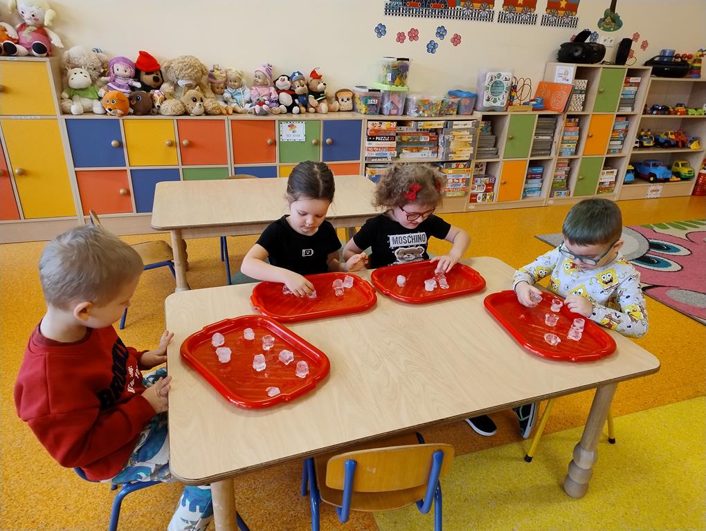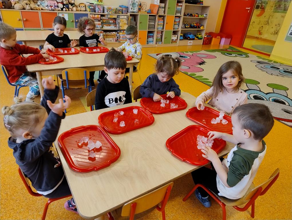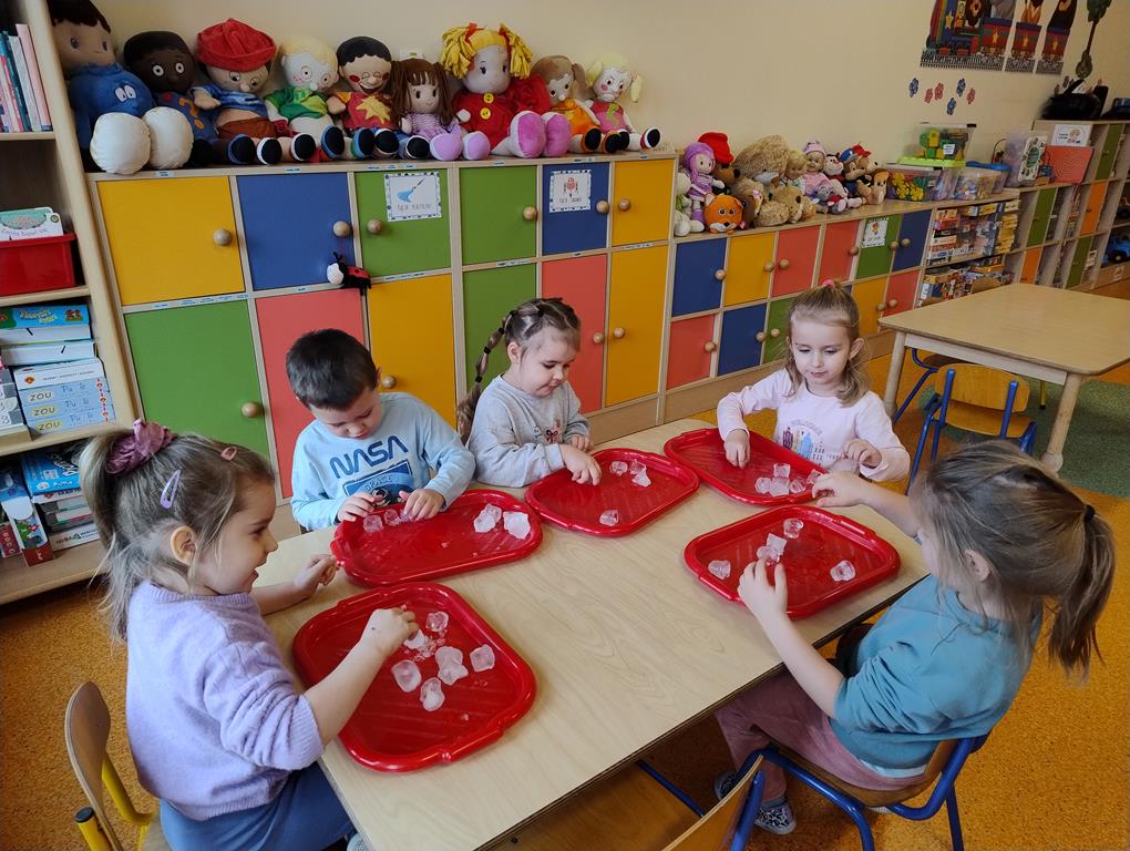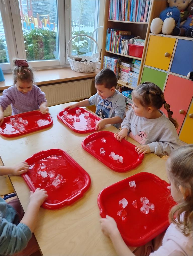8 stycznia dzieci z grupy Biedronki wzięły udział w zajęciach badawczych z wykorzystaniem lodu. Przedszkolaki poznawały jego właściwości, angażując swoje zmysły – dotyk, wzrok i słuch. Obserwowały, jak lód topnieje, sprawdzały jego temperaturę oraz strukturę, a także podejmowały próby budowania lodowych budowli. Zajęcia dostarczyły wielu radosnych emocji, rozwijały ciekawość poznawczą i zachęcały dzieci do samodzielnego eksperymentowania oraz odkrywania świata poprzez zabawę.