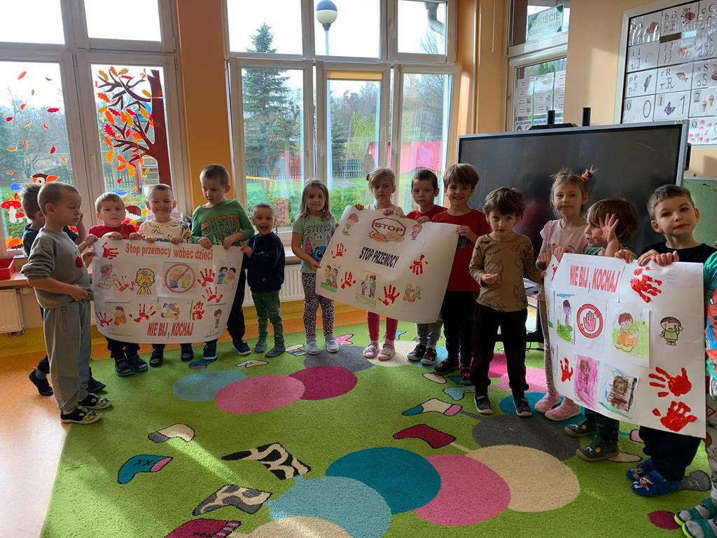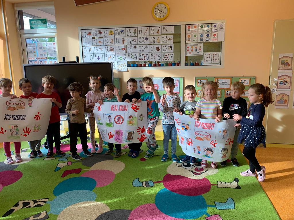 Nasze przedszkole włączyło się w ogólnopolską kampanię "Dzieciństwo bez przemocy". Kampania jest wyrazem sprzeciwu wobec krzywdzenia dzieci i ma na celu promowanie rozwiązań sprzyjających dobremu dzieciństwu. Motylki wzięły udział w przedsięwzięciu promującym właściwe zachowania. Dzieci potrafią rozpoznawać podstawowe emocje. Wiedzą, że bicie, krzyczenie, wyśmiewanie czy straszenie to forma przemocy. Motylki potrafią powiedzieć "Nie zgadzam się" w sytuacji, gdy ktoś je krzywdzi i wiedzą, do kogo mogą się zwrócić o pomoc.