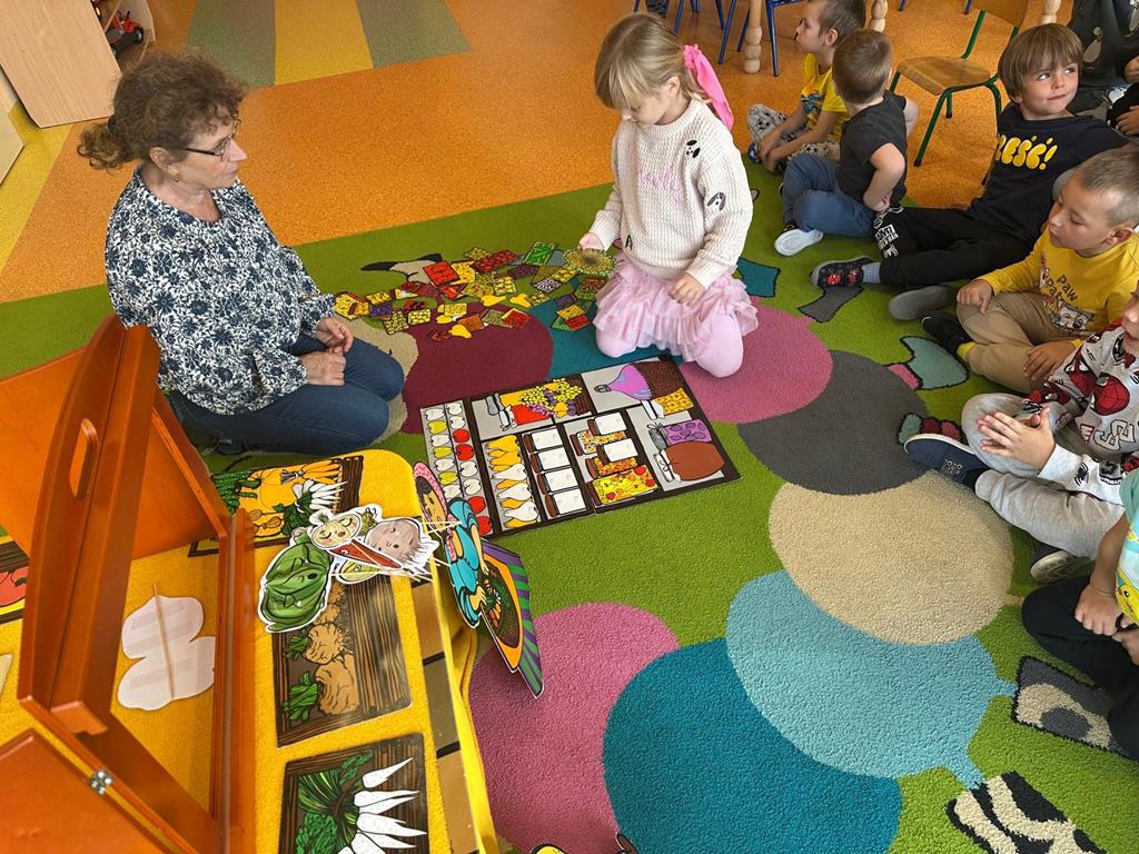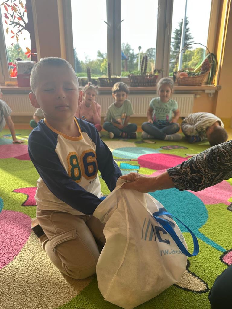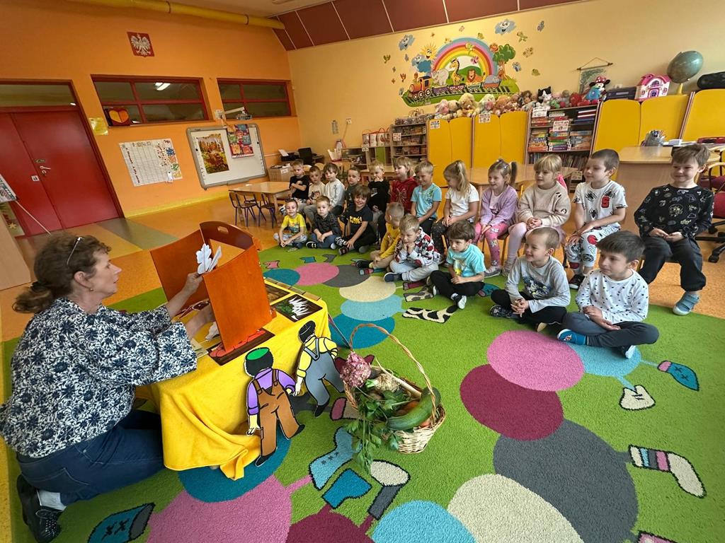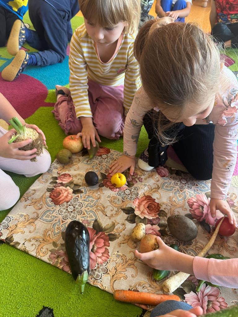 W dniach od 29 września do 1 października dzieci z grupy Motylki wzięły udział w zajęciach poświęconych jesiennym darom z sadu i ogrodu. Wysłuchały teatrzyku pt. "Na straganie", który wprowadził je w tematykę jesiennych zbiorów. Dzieci poznały różne warzywa i owoce za pomocą zmysłów: dotyku, zapachu, wzroku. Podczas zajęć przedszkolaki dokonywały podziału na warzywa i owoce, a także rozwijały swoją kreatywność, wykonując prace plastyczne: "Kalafior", "Owocowe przetwory". Zajęcia dostarczyły wielu wrażeń i radości, a jednocześnie pozwoliły utrwalić wiedzę o darach jesieni.