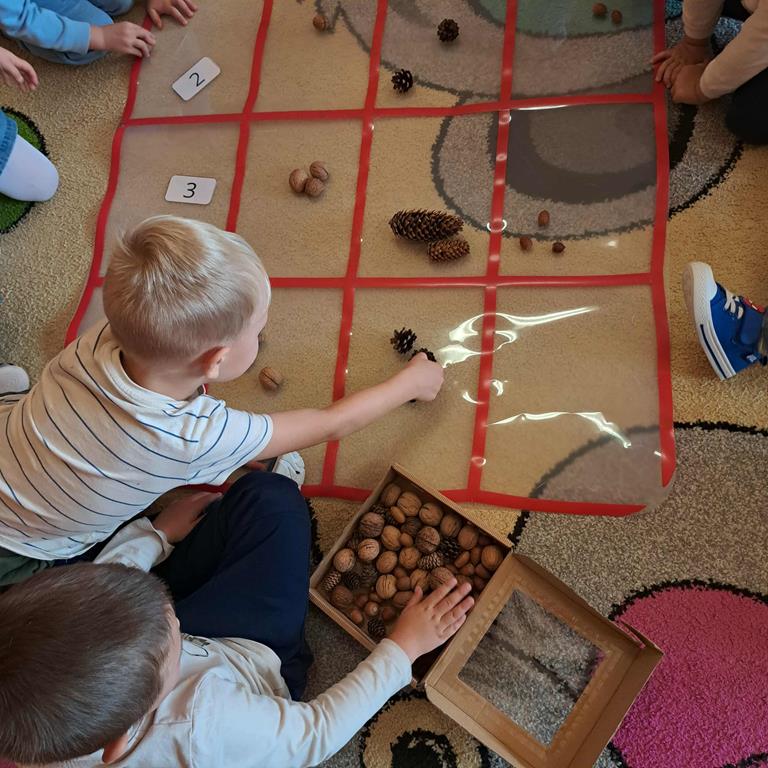 W grupie "Biedronki" zagościła jesień. Przedszkolaki kodowały dary jesieni z wykorzystaniem maty do kodowania : orzechy, szyszki, żołędzie. Poznawały dary jesieni wielozmysłowo, a także przeliczały je, układały rytmy z ich wykorzystaniem.
