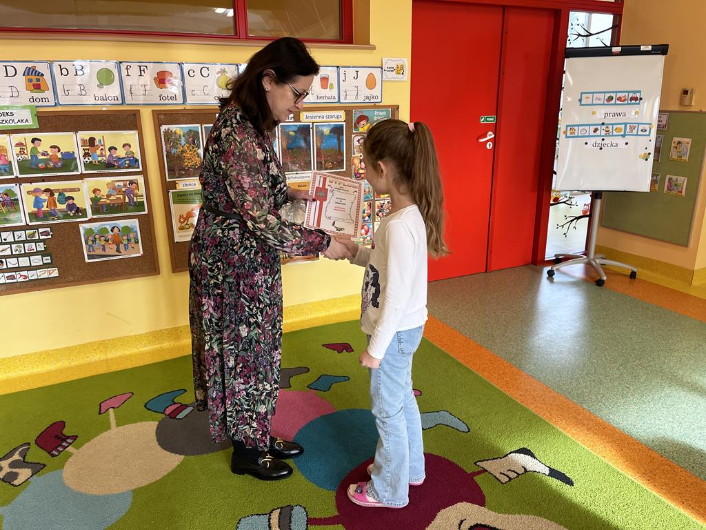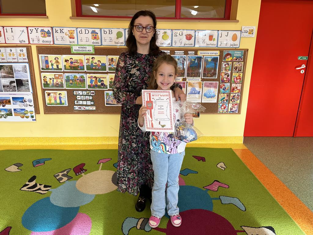 Hanna Socha z grupy Pszczółek wzięła udział w konkursie plastycznym "Kotyliony Narodowe" organizowanym przez Przedszkole nr 31 "Pod tęczą" w Koninie. Hania wraz z rodzicami przygotowała kotylion narodowy za który została nagrodzona dyplomem oraz upominkiem, który wręczyła Pani dyrektor Danuta Kaliszewska. Serdeczne gratulacje!