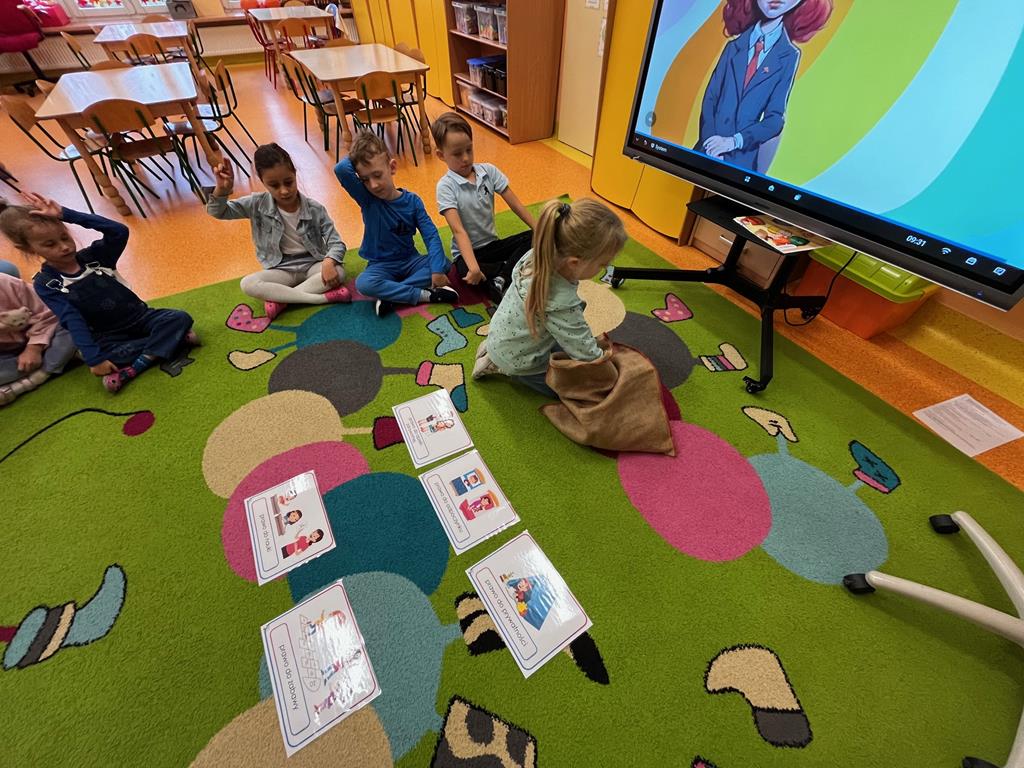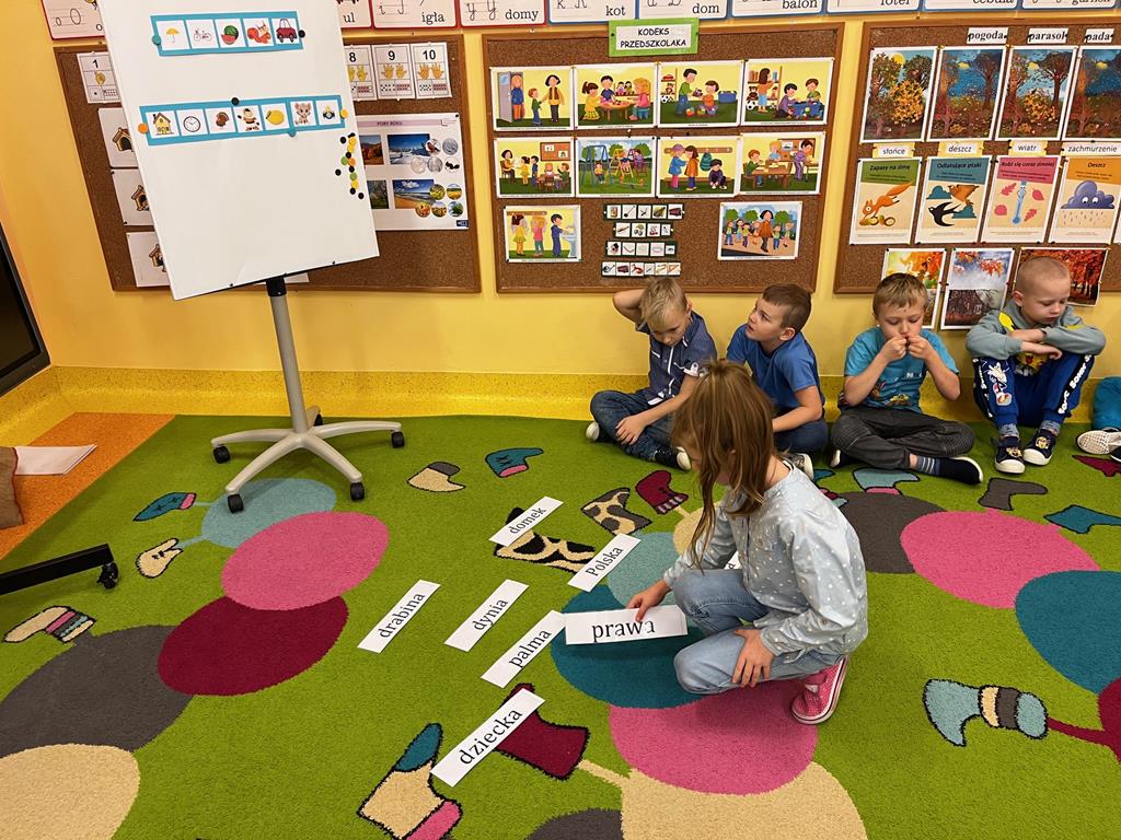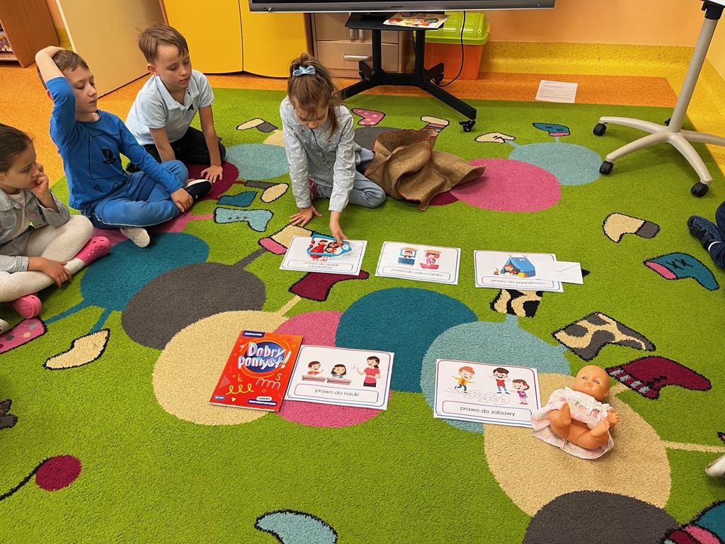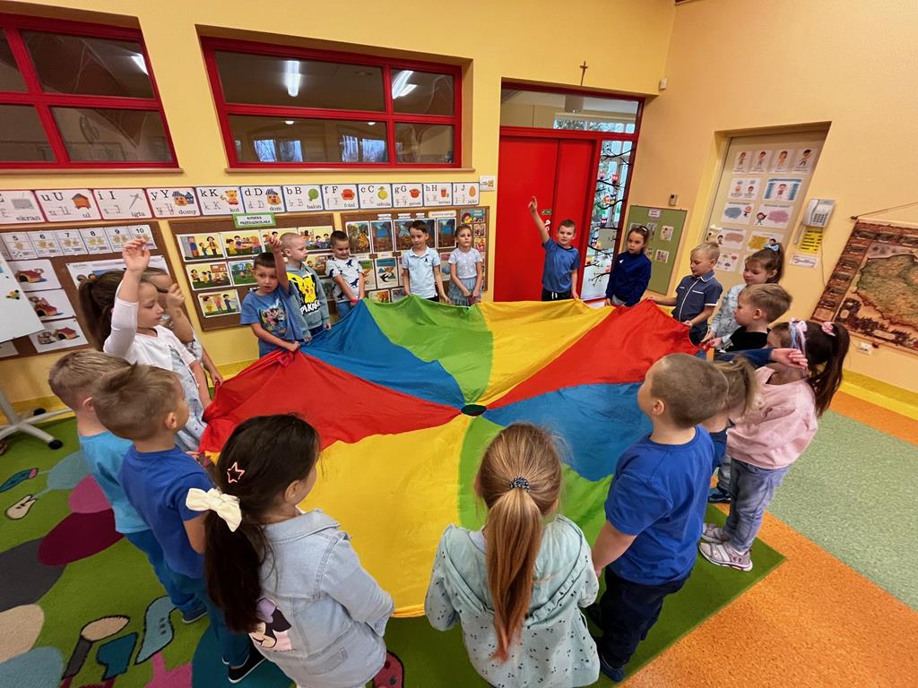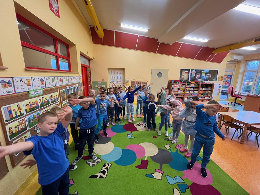 Dnia 20.11. 2025r. grupa „Pszczółek” obchodziła Międzynarodowy Dzień Praw Dziecka. Tego dnia przedszkolaki przyszły ubrane w kolorze niebieskim, aby pokazać solidarność ze wszystkimi dziećmi na świecie, również tymi, których prawa nie są przestrzegane. Dzieci rozwiązywały rebus fonetyczny, którego rozwiązaniem było hasło: prawa dziecka. Oglądały film edukacyjny, pt.: „Prawa i obowiązki dzieci”, który był pretekstem do rozmowy na temat Konwencji o Prawach Dziecka. Następnie dzieci dopasowywały wylosowane przedmioty charakterystyczne dla poszczególnych praw. Ilustrowały ruchem treści wiersza "Mały człowiek, duża sprawa". Odgrywały także mini- scenki „Co zrobić, gdy prawa są łamane?” Na koniec w zabawie z chustą animacyjną utrwalały nazwy praw dziecka w zabawie „Parasol praw dziecka.” Na koniec dzieci rozwijały swoją twórczość plastyczną i przygotowały ilustracje na temat „Moje ulubione prawo.”