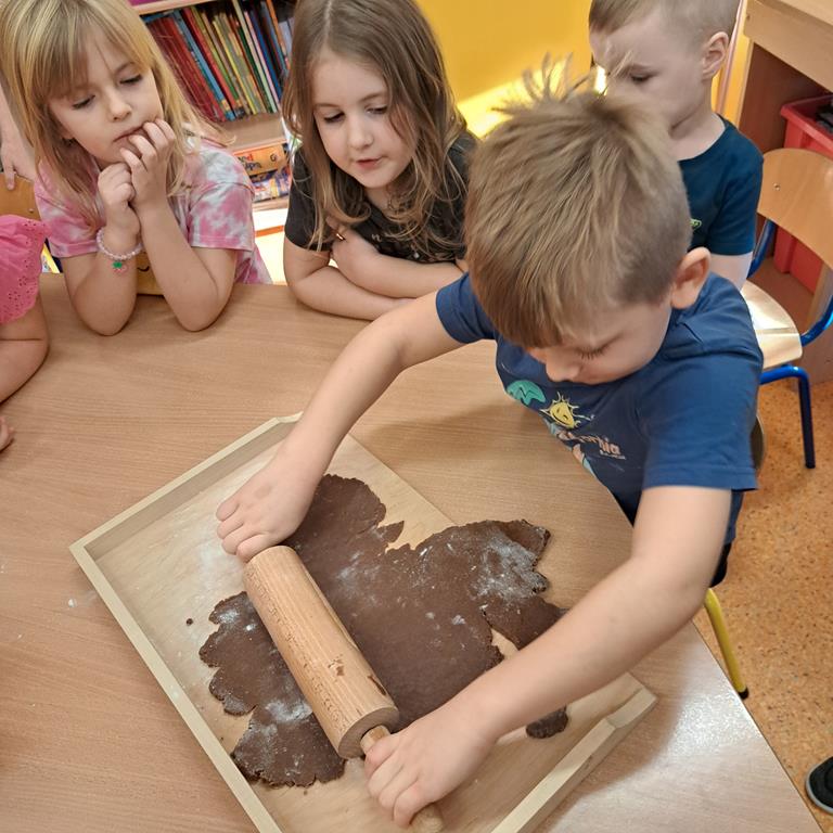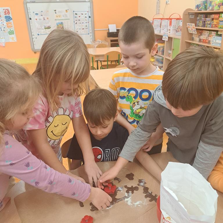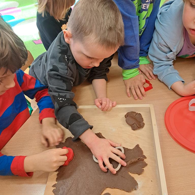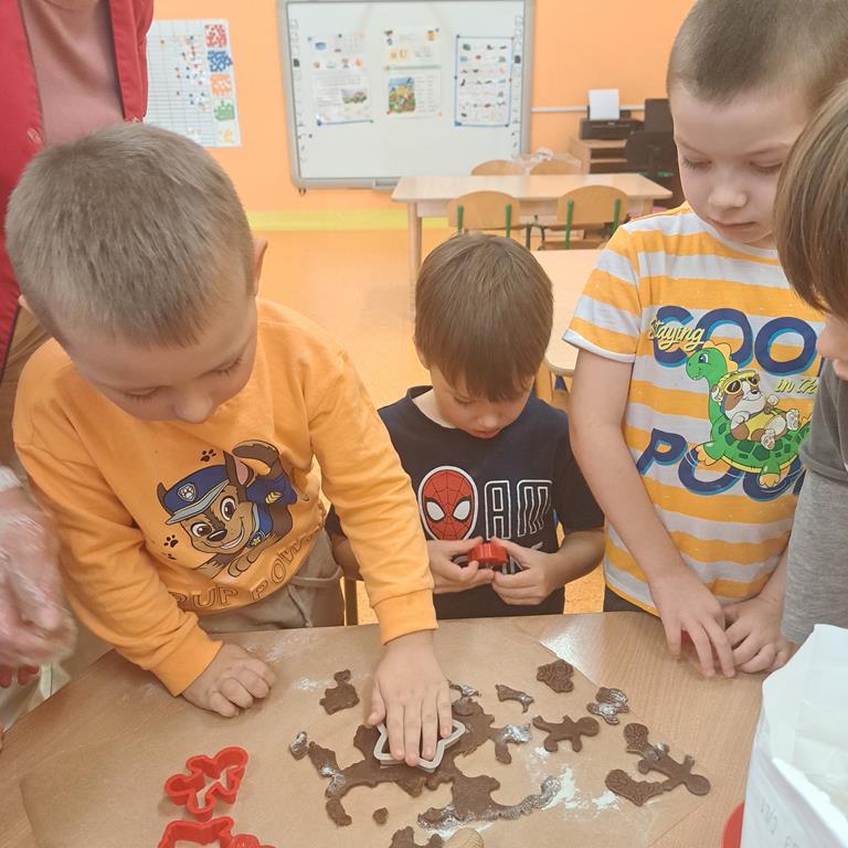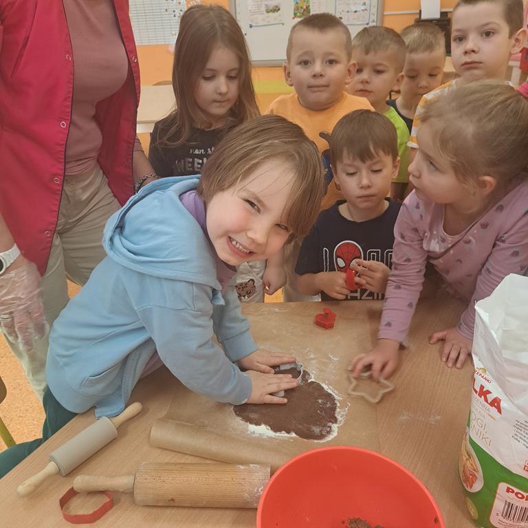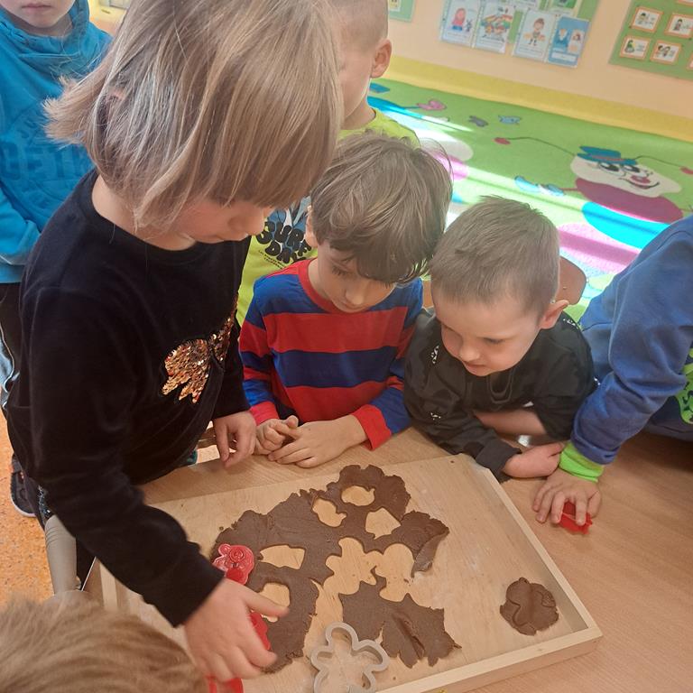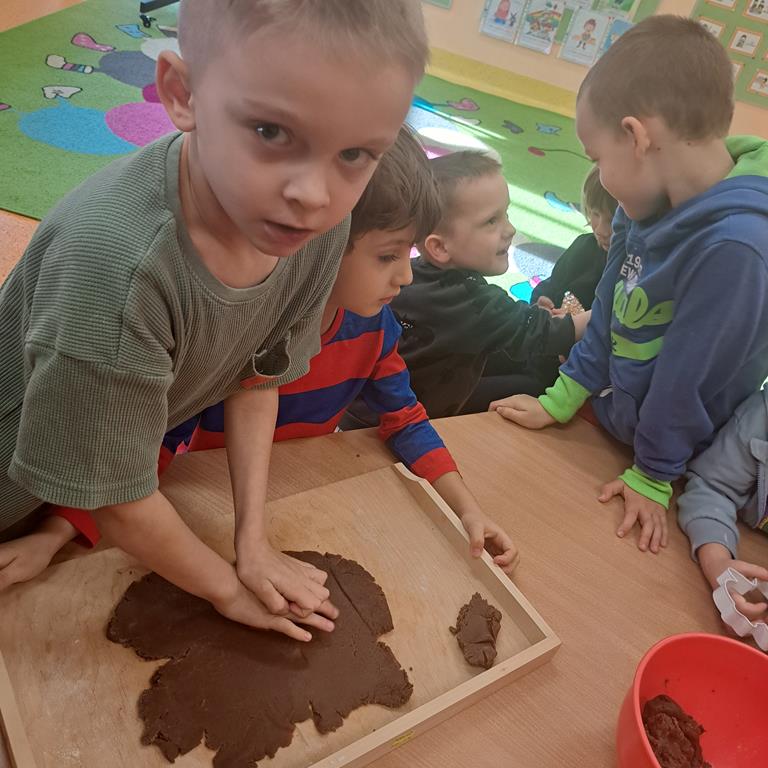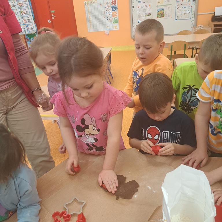 W dniu 28 listopada 2025 roku dzieci z grupy "Motylki" przygotowały świąteczne pierniczki. Dzieci z ogromnym zaangażowaniem wałkowały ciasto i wykrawały ulubione kształty. W całej sali unosił się przepiękny, korzenny zapach, wprawiając dzieci w świąteczny, magiczny nastrój. Przedszkolaki kosztowały swych wypieków, jednogłośnie twierdząc, że są pyszne.