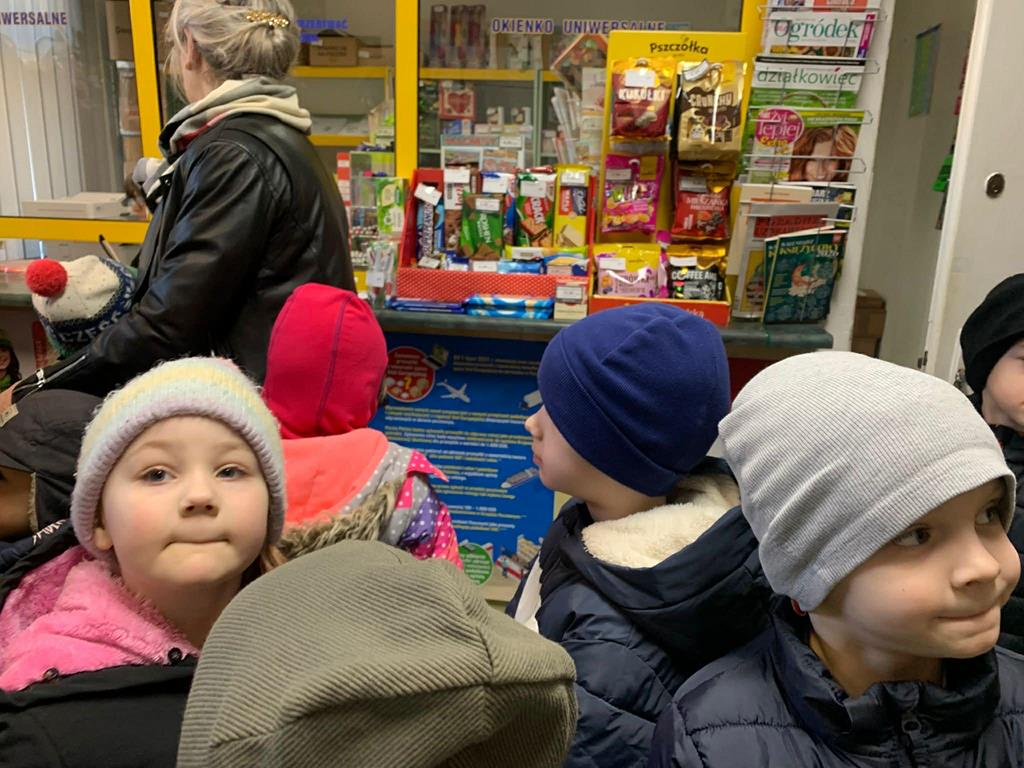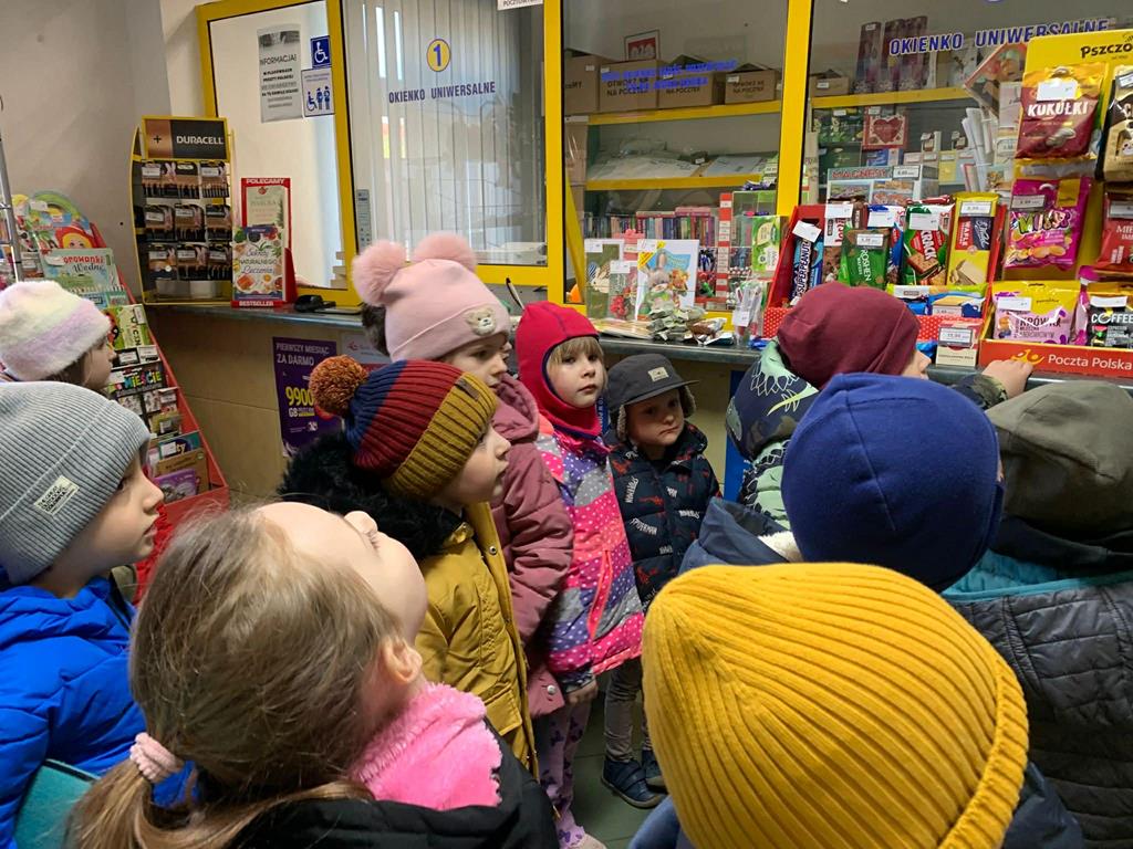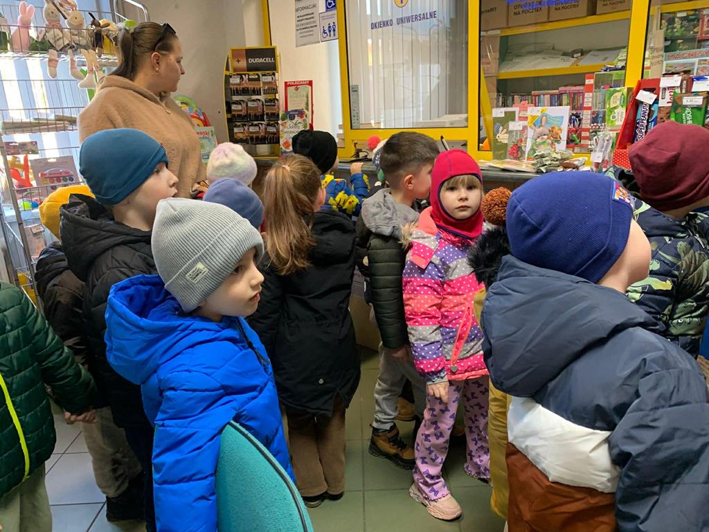 W dniu 3 marca 2026 roku dzieci z grupy Motylki odwiedziły pocztę. Pracownik poczty opowiedział o swoich obowiązkach. Dzieci dowiedziały się, w jaki sposób listy i przesyłki trafią do adresatów oraz jak wygląda ich droga od nadawcy do odbiorcy. Następnie przedszkolaki udały się do sklepu spożywczego. Ekspedientka opowiedziała o swojej pracy, która polega na obsłudze klientów, dbaniu o porządek na półkach oraz przyjmowaniu i wykładaniu towaru. Dzieci zobaczyły, jak działa kasa i jak ważna jest uprzejmość w kontakcie z klientem. Wycieczka była bardzo ciekawa i pouczająca. Jej celem było poznanie pracy osób zatrudnionych w tych miejscach oraz zrozumienie, jak ważną rolę pełnią one w codziennym życiu.