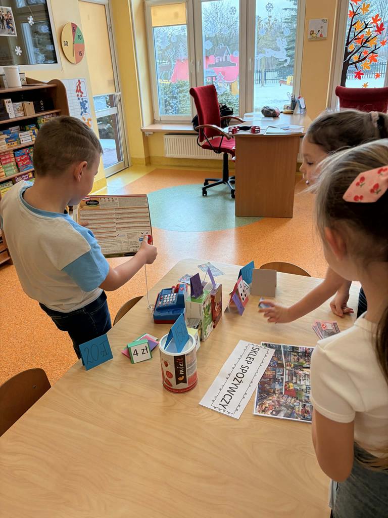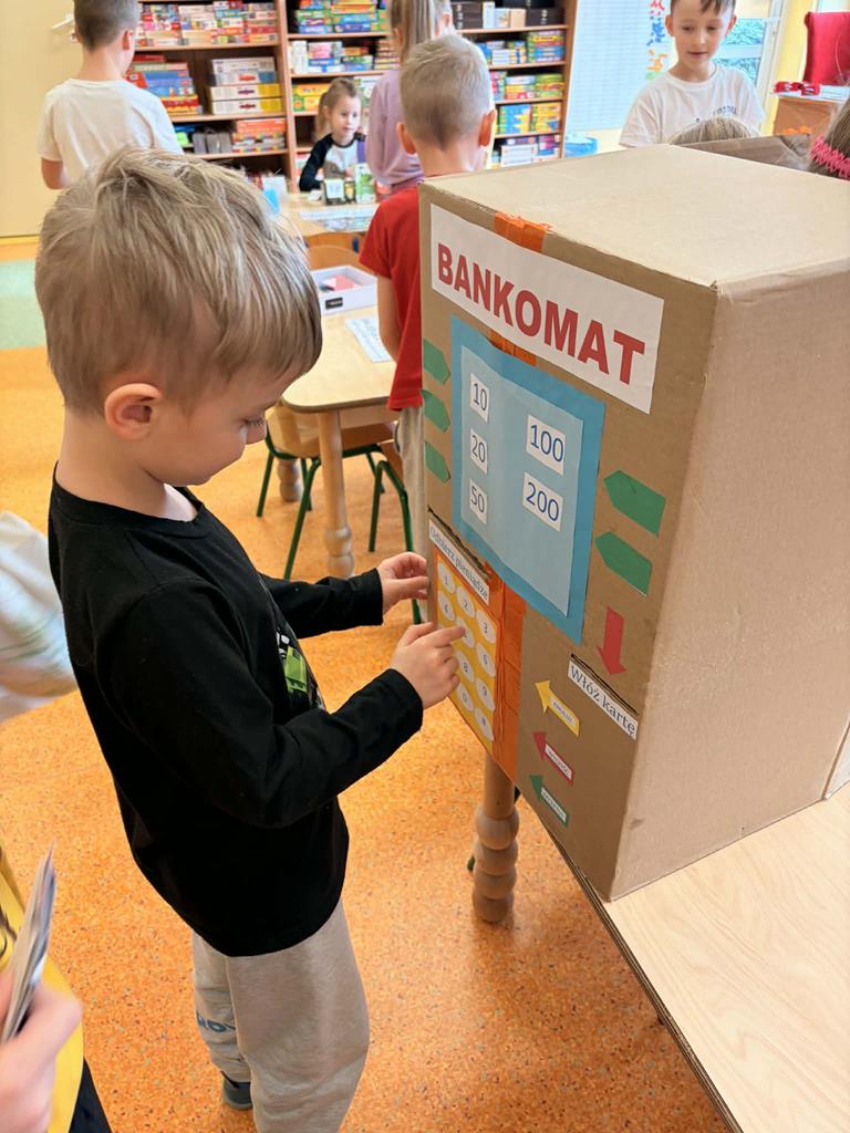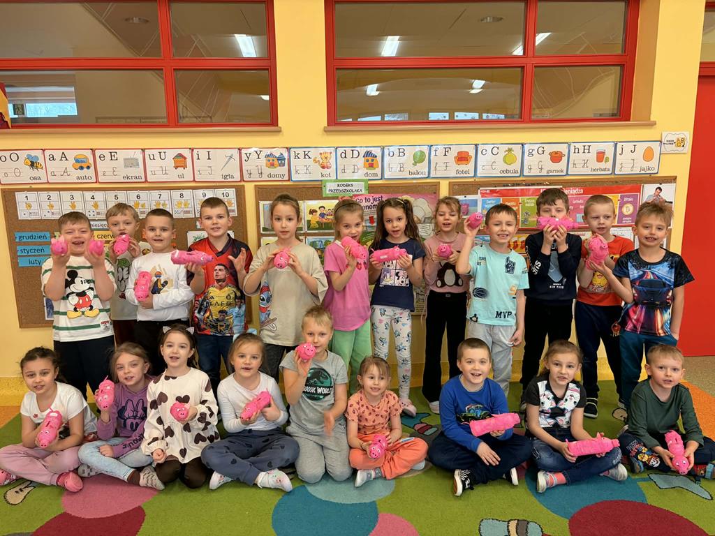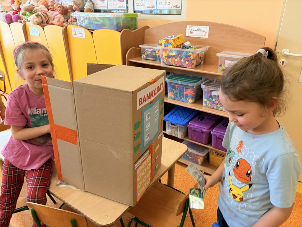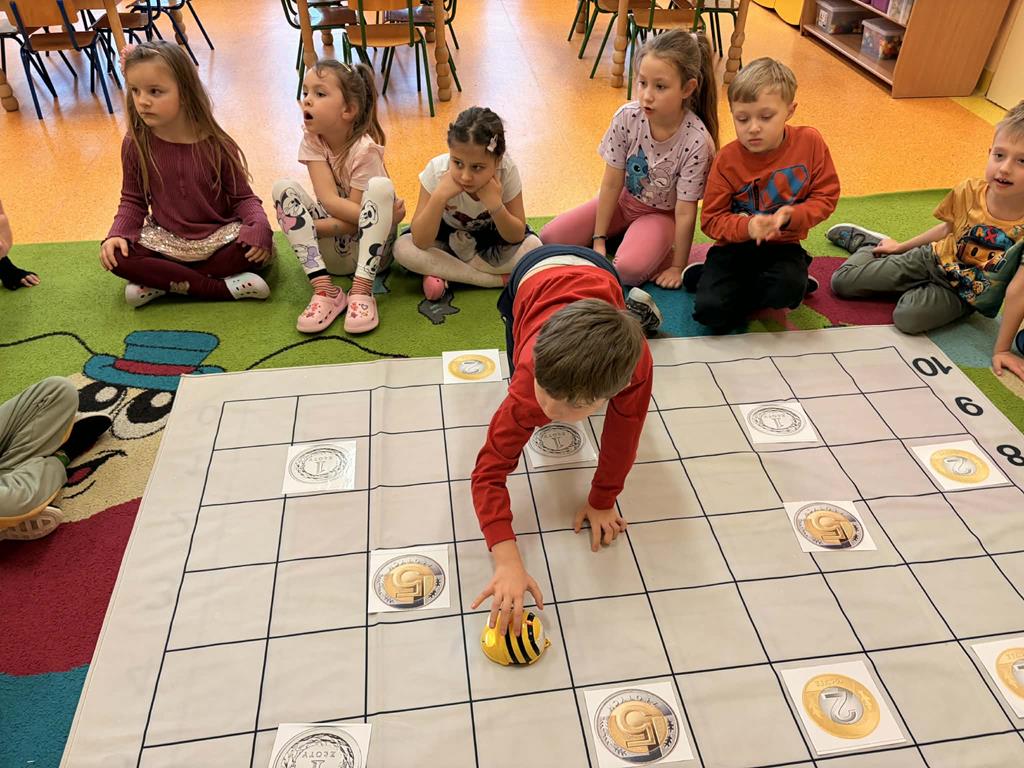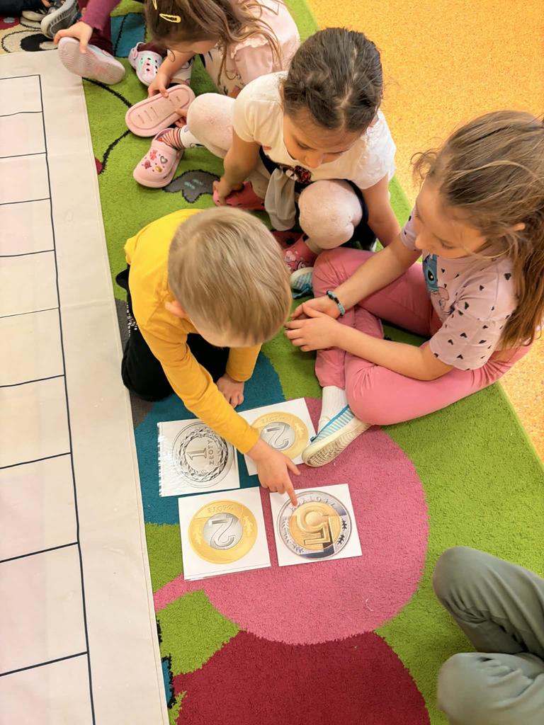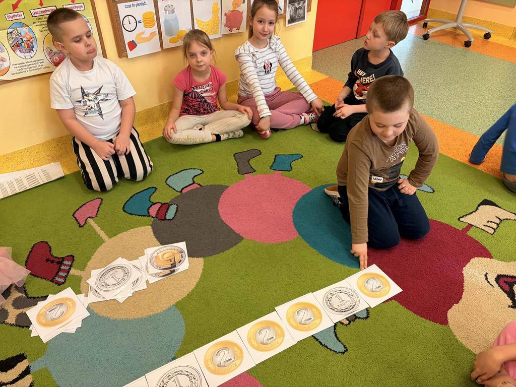 W dniach 9-13.02.2026r. przedszkolaki z grupy "Pszczółek" realizowały projekt edukacyjny „ABC ekonomii, czyli pierwsze kroki w świecie finansów”, odkrywając tajniki zarządzania pieniędzmi poprzez świetną zabawę. Dzieci wykazały się dużą kreatywnością, przygotowując własne świnki-skarbonki z plastikowych butelek i bibuły oraz grając w nietypowe kółko i krzyżyk z wykorzystaniem awersów i rewersów monet. W kącikach tematycznych uczyły się obsługi kartonowego bankomatu oraz prowadziły własne sklepy i aptekę, zaczynając od precyzyjnego segregowania towarów i dopasowywania podpisów do ilustracji. Mali ekonomiści trenowali też logiczne myślenie podczas układania monetarnego sudoku oraz zaawansowanych zajęć z kodowania. Za pomocą strzałek programowały drogę robota Bee-Bot tak, aby zebrał monety o konkretnej łącznej wartości, np. 5 lub 10 zł, radząc sobie przy tym świetnie z dodatkowymi wyzwaniami, takimi jak zakaz używania wybranych nominałów. Doskonaliły również umiejętność kontynuowania rytmów z wykorzystaniem monet. Ponadto poznały historię powstania pieniędzy w oparciu o film edukacyjny „Historia Pieniądza” i utrwalały ją, dzięki układaniu historyki obrazkowej.