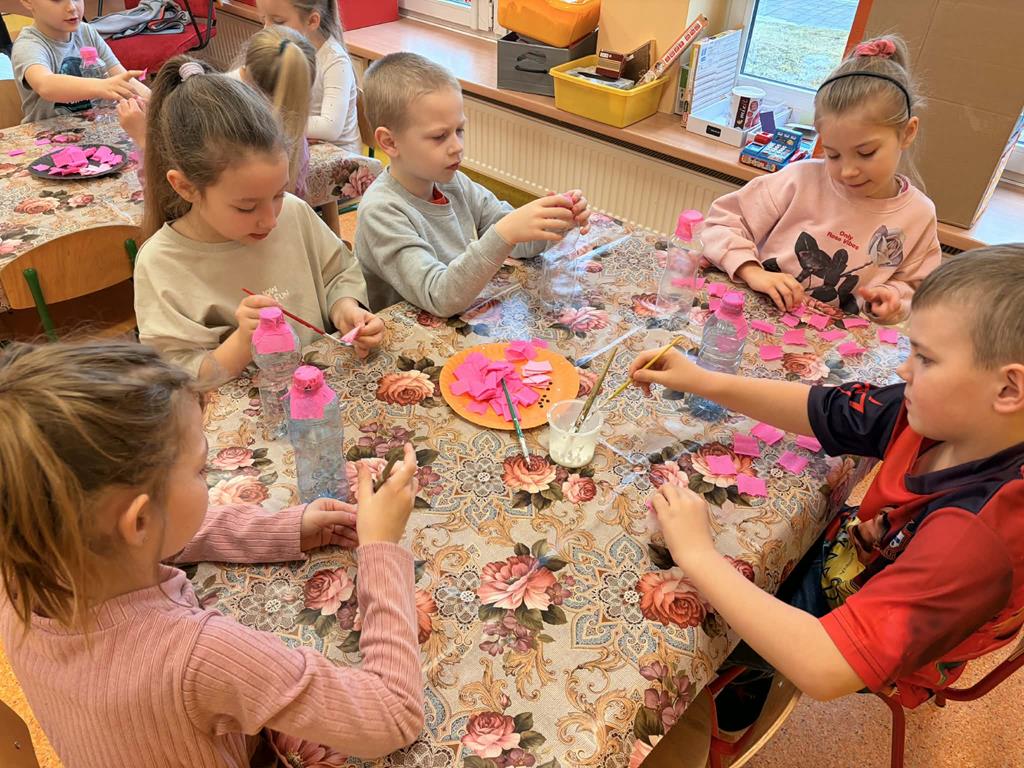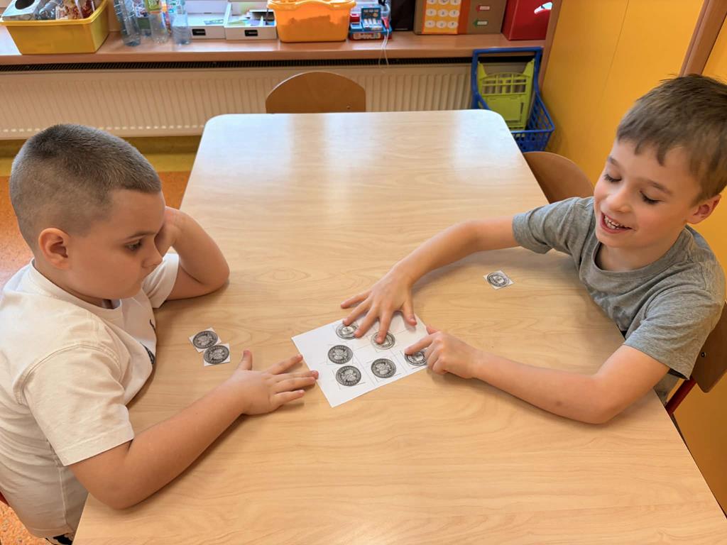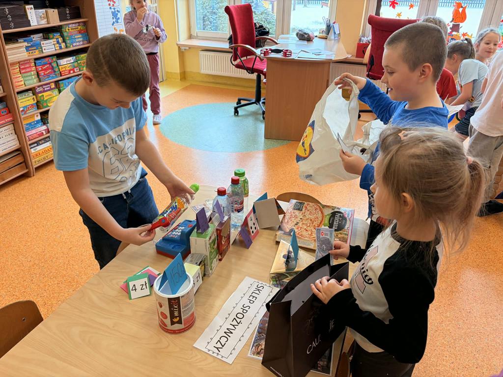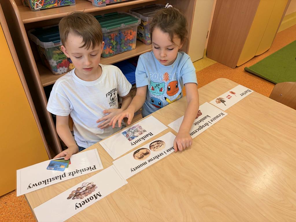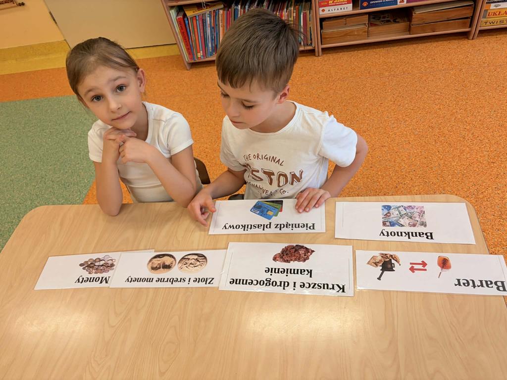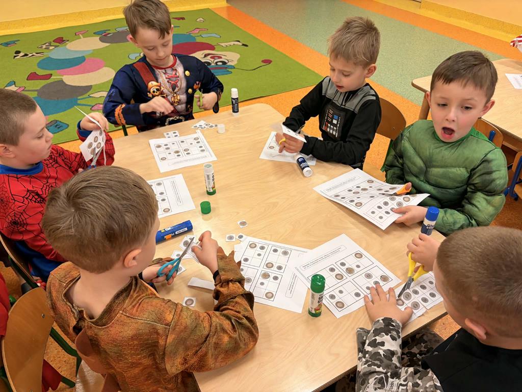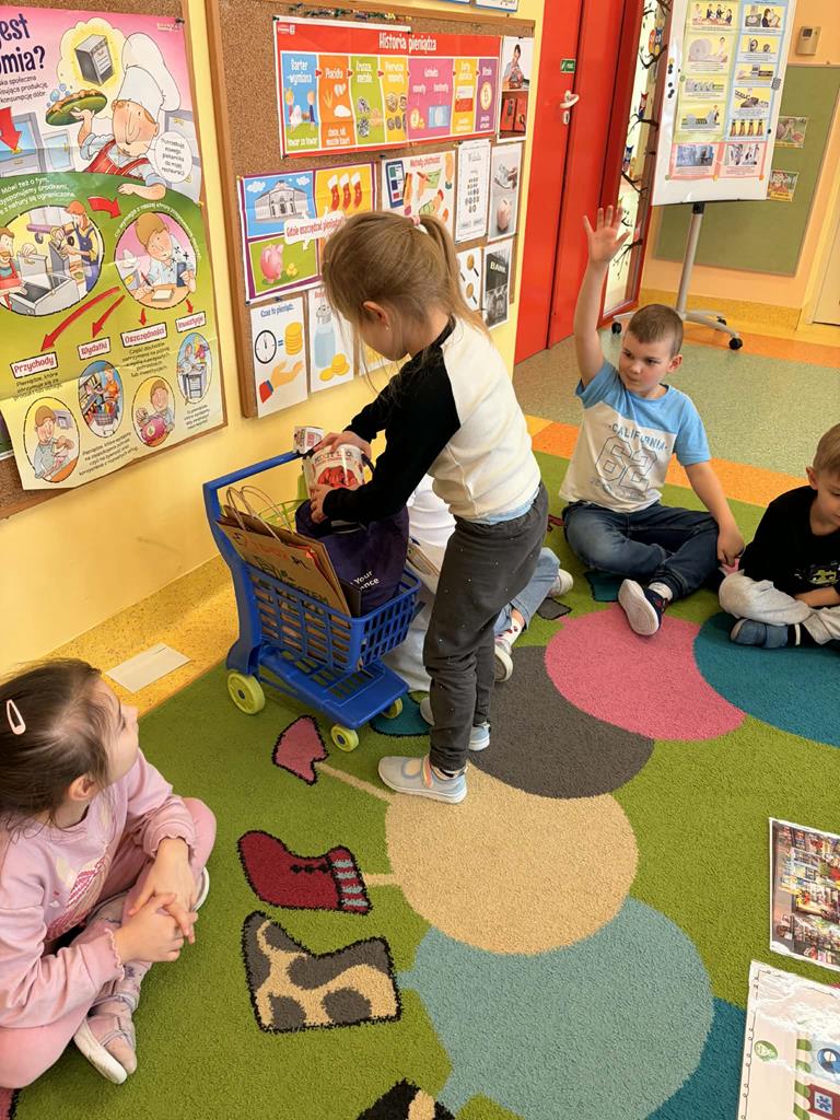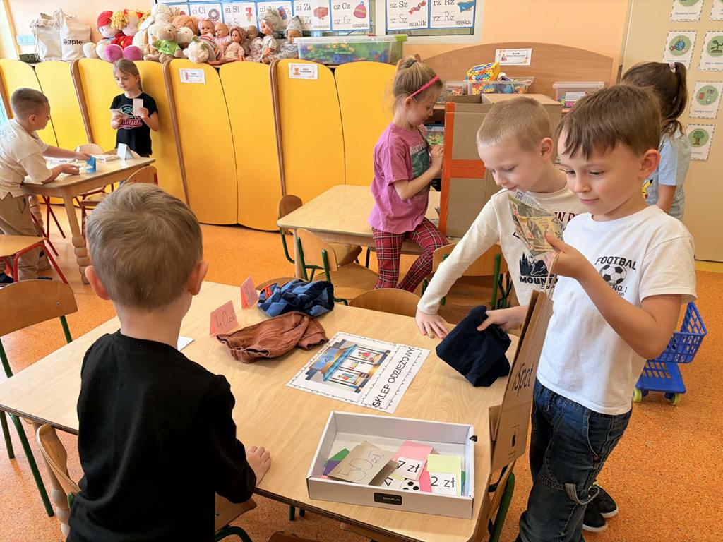 W dniach 9-13.02.2026r. przedszkolaki z grupy "Pszczółek" realizowały projekt edukacyjny „ABC ekonomii, czyli pierwsze kroki w świecie finansów”, odkrywając tajniki zarządzania pieniędzmi poprzez świetną zabawę. Dzieci wykazały się dużą kreatywnością, przygotowując własne świnki-skarbonki z plastikowych butelek i bibuły oraz grając w nietypowe kółko i krzyżyk z wykorzystaniem awersów i rewersów monet. W kącikach tematycznych uczyły się obsługi kartonowego bankomatu oraz prowadziły własne sklepy i aptekę, zaczynając od precyzyjnego segregowania towarów i dopasowywania podpisów do ilustracji. Mali ekonomiści trenowali też logiczne myślenie podczas układania monetarnego sudoku oraz zaawansowanych zajęć z kodowania. Za pomocą strzałek programowały drogę robota Bee-Bot tak, aby zebrał monety o konkretnej łącznej wartości, np. 5 lub 10 zł, radząc sobie przy tym świetnie z dodatkowymi wyzwaniami, takimi jak zakaz używania wybranych nominałów. Doskonaliły również umiejętność kontynuowania rytmów z wykorzystaniem monet. Ponadto poznały historię powstania pieniędzy w oparciu o film edukacyjny „Historia Pieniądza” i utrwalały ją, dzięki układaniu historyki obrazkowej.
