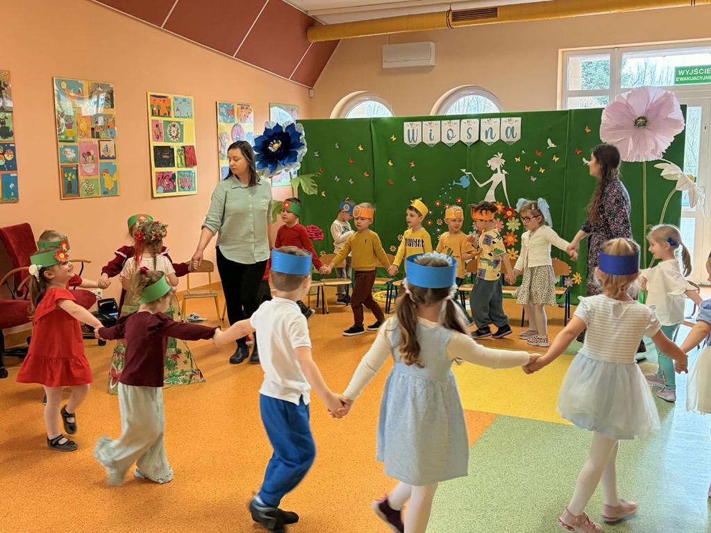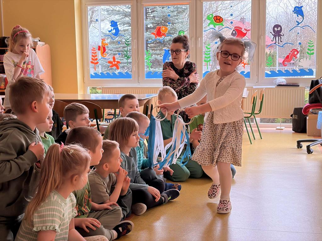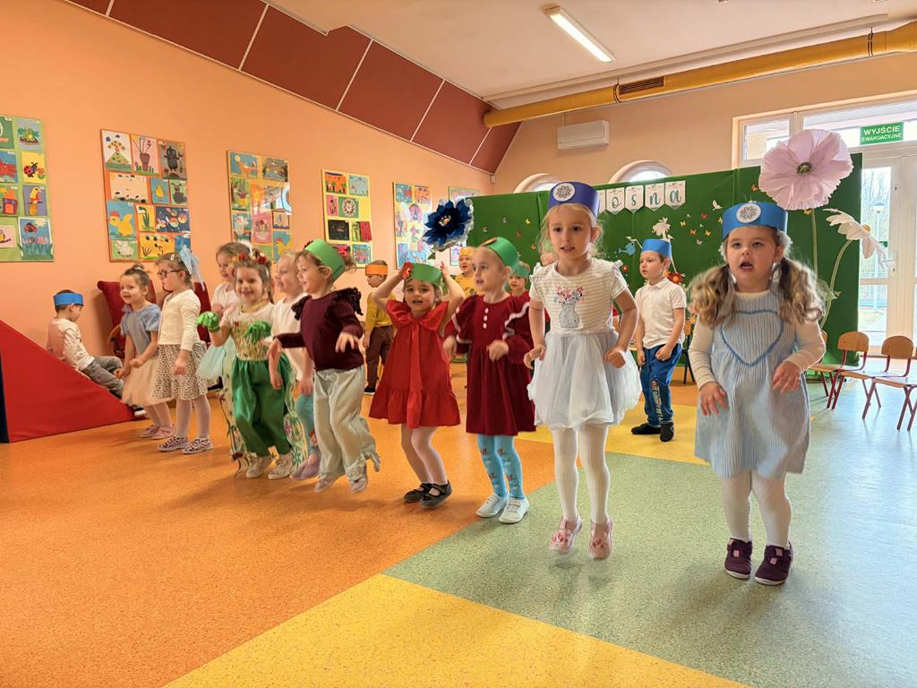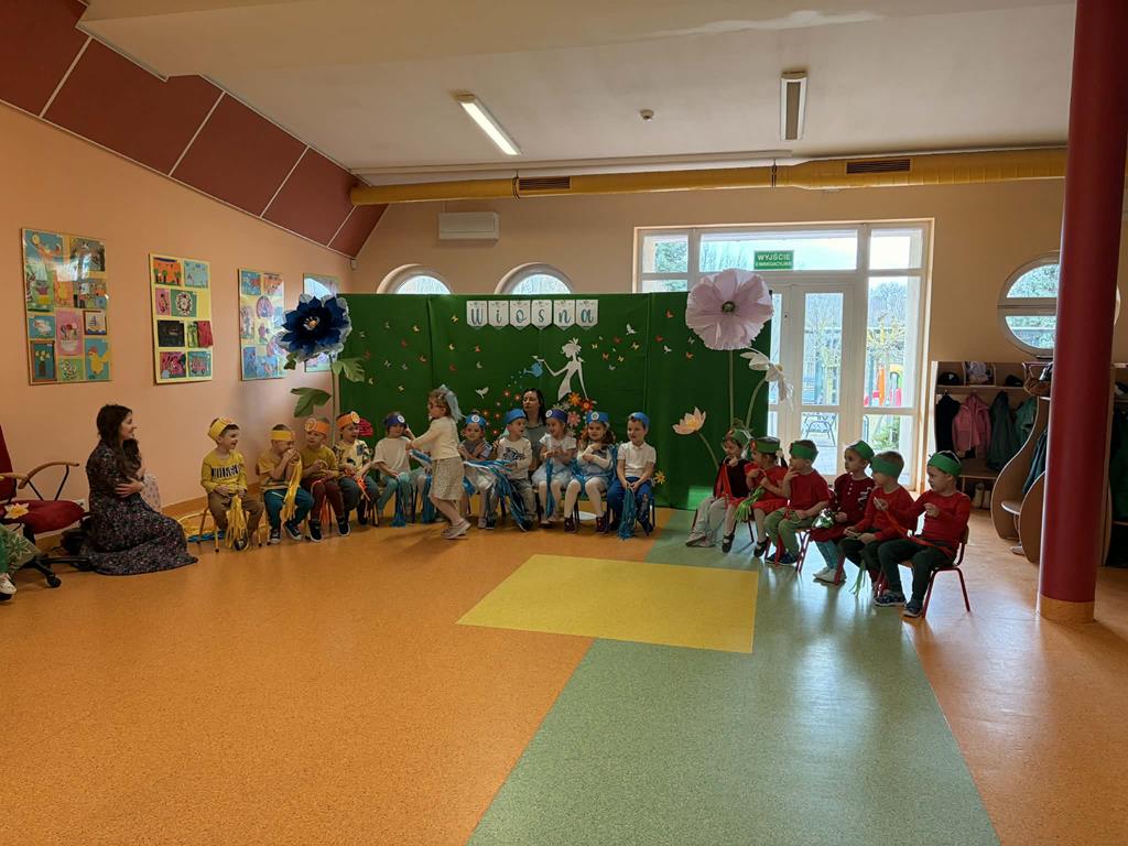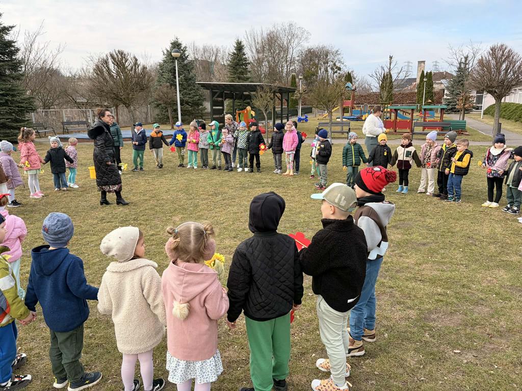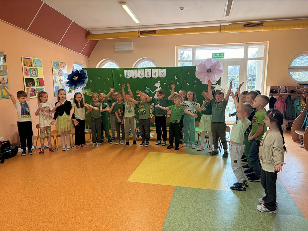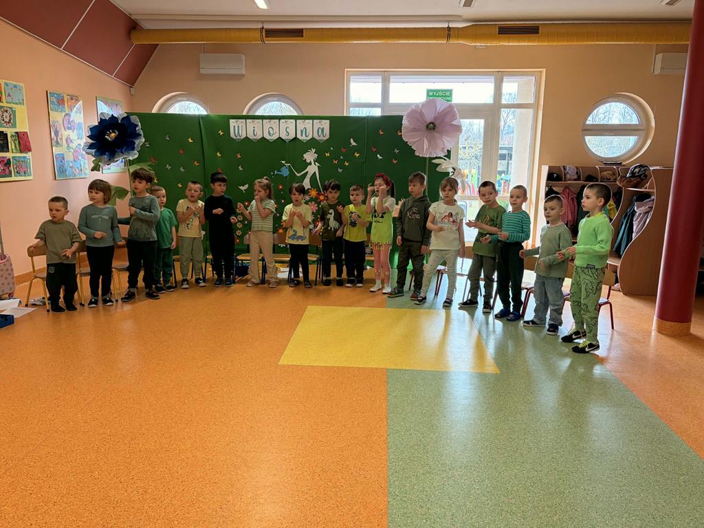 W naszym przedszkolu hucznie i kolorowo powitaliśmy najpiękniejszą porę roku! Świętowanie rozpoczęliśmy od wyjątkowej części artystycznej. Na scenie zaprezentowały się wszystkie grupy, oczarowując nas wiosennymi tańcami oraz radosnym śpiewem piosenek o wiośnie. Po występach, w barwnym korowodzie i z uśmiechami na twarzach, wyruszyliśmy na uroczysty wiosenny przemarsz. Trzymając w rękach kolorowe symbole wiosny, dotarliśmy do przedszkolnego ogrodu. Zgodnie z tradycją, nadszedł czas na pożegnanie zimy. Aby ostatecznie wypędzić mróz, odbyło się symboliczne oblanie Marzanny wodą, co wywołało mnóstwo radości wśród dzieci. Tym samym ogłosiliśmy oficjalne przywitanie wiosny w naszym ogrodzie!