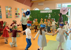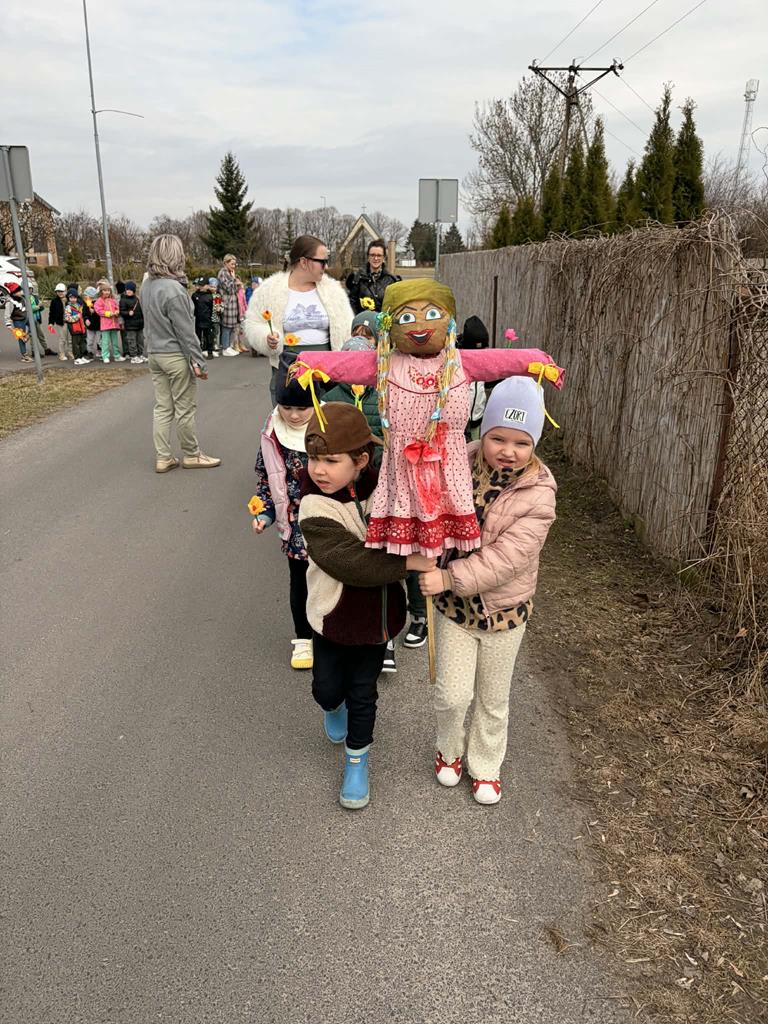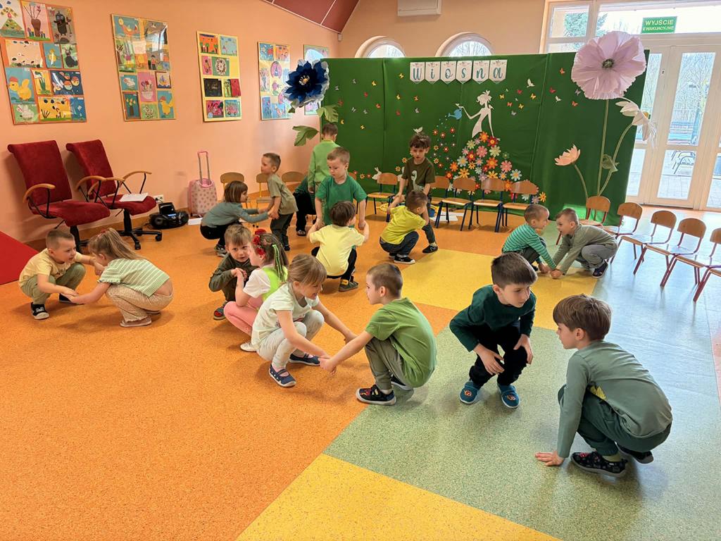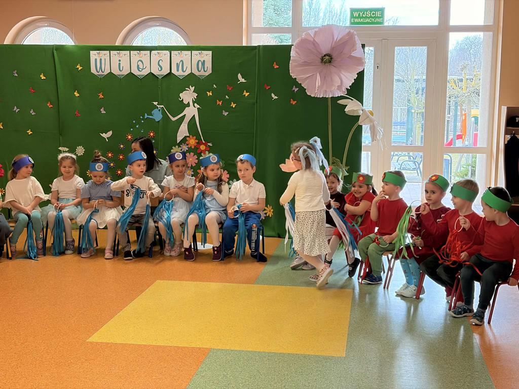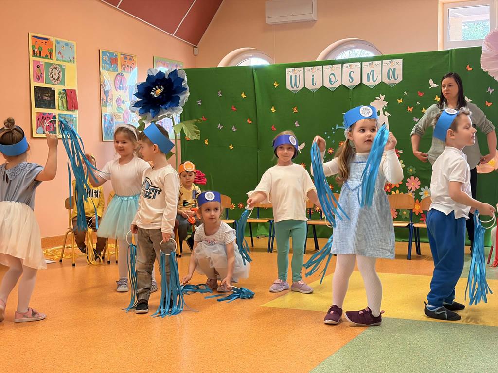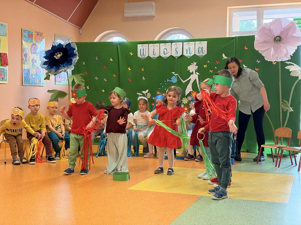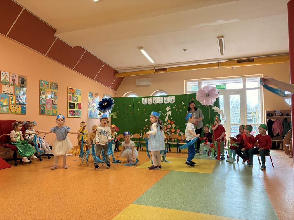 W naszym przedszkolu hucznie i kolorowo powitaliśmy najpiękniejszą porę roku! Świętowanie rozpoczęliśmy od wyjątkowej części artystycznej. Na scenie zaprezentowały się wszystkie grupy, oczarowując nas wiosennymi tańcami oraz radosnym śpiewem piosenek o wiośnie. Po występach, w barwnym korowodzie i z uśmiechami na twarzach, wyruszyliśmy na uroczysty wiosenny przemarsz. Trzymając w rękach kolorowe symbole wiosny, dotarliśmy do przedszkolnego ogrodu. Zgodnie z tradycją, nadszedł czas na pożegnanie zimy. Aby ostatecznie wypędzić mróz, odbyło się symboliczne oblanie Marzanny wodą, co wywołało mnóstwo radości wśród dzieci. Tym samym ogłosiliśmy oficjalne przywitanie wiosny w naszym ogrodzie!