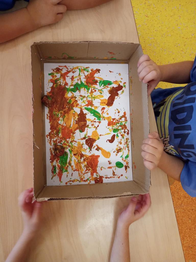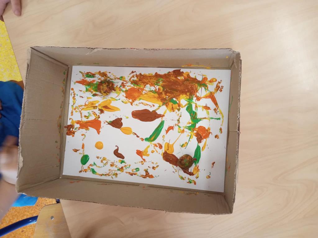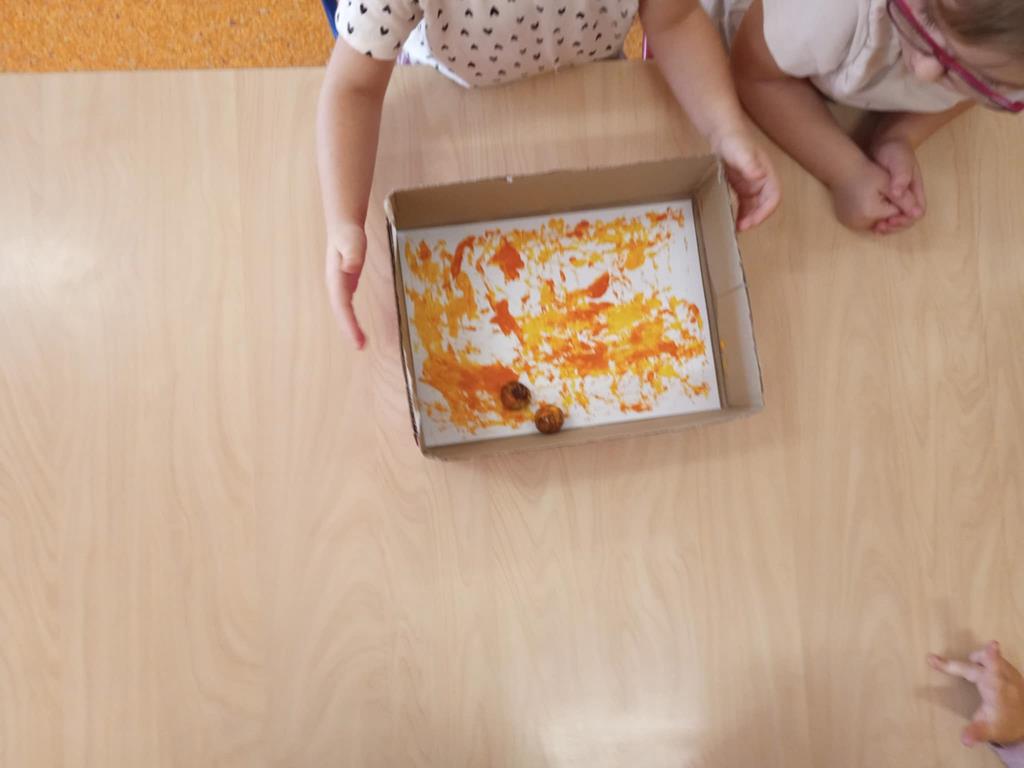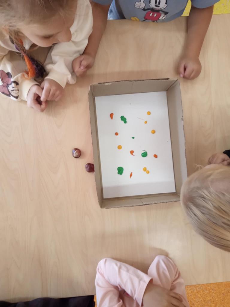 Dzisiaj "Biedronki " zaprosiły naturę do środka a skaczącymi kasztanami stworzyły piękne jesienne krajobrazy.