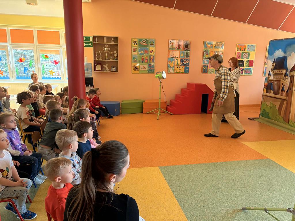 19 marca nasze przedszkolaki miały okazję przenieść się w świat sztuki. Gościliśmy teatr, który wystawił dla nas przedstawienie pt. „Złota kaczka”.Dzieci z zapartym tchem śledziły losy biednego szewczyka i uczyły się ważnej lekcji, że prawdziwe szczęście dają dobre uczynki i dzielenie się z innymi, a nie złote dukaty.