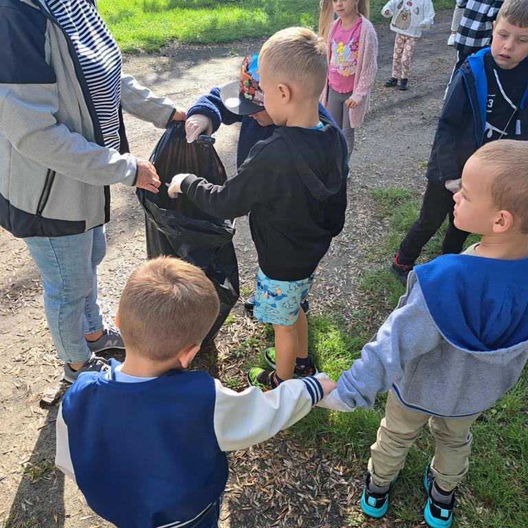 W dniu 19 września 2025 roku w naszym przedszkolu odbyło się coroczne "Sprzątanie Świata". W tym roku wydarzenie to nosiło hasło "W naturę z kulturą". Dzieci z grupy "Motylki" oraz "Pszczółki" wybrały się na spacer po najbliższej okolicy wyposażone w rękawiczki i worki na odpady. Przedszkolaki z ogromną starannością posprzątały najbliższe otoczenie, utrwalając przy tym wiadomości na temat zasad segregacji odpadów, a także kształtując współodpowiedzialność za środowisko przyrodnicze.