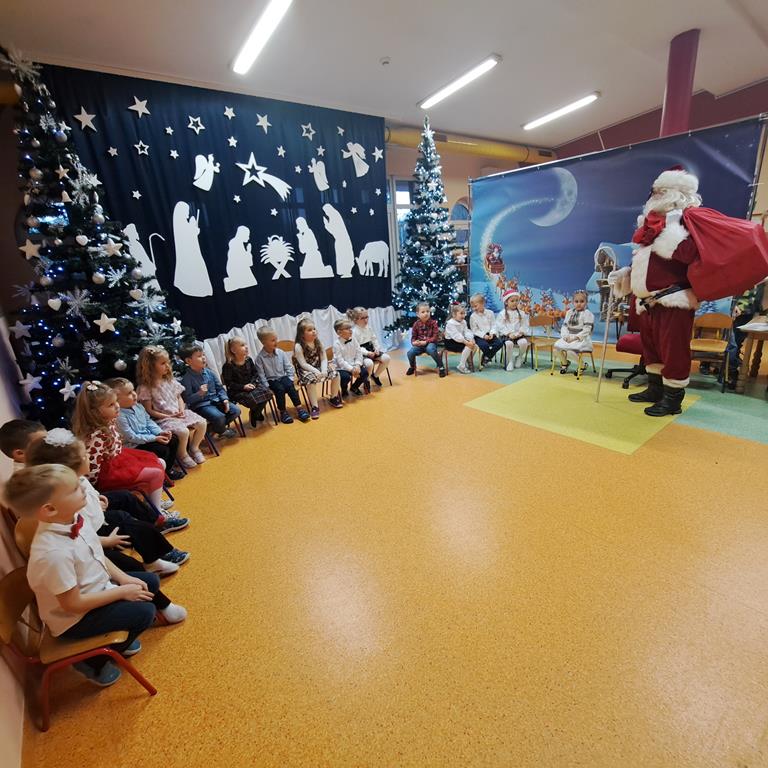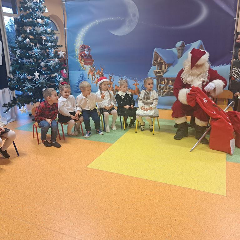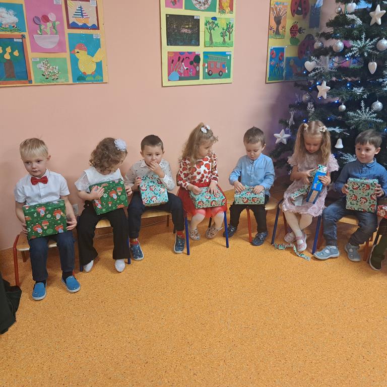W dniu 11 grudnia 2025 roku w grupie "Biedronki" odbyła się uroczystość choinkowa. Dzieci recytowały wiersze, śpiewały piosenki oraz tańczyły, wprowadzając swych najbliższych w świąteczny, magiczny nastrój. Na zakończenie występów przedszkolaki odwiedził ktoś wyjątkowy - Święty Mikołaj we własnej osobie i obdarował każde dziecko upominkiem.