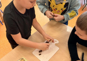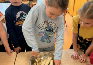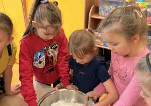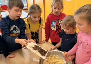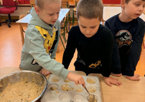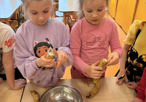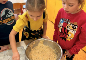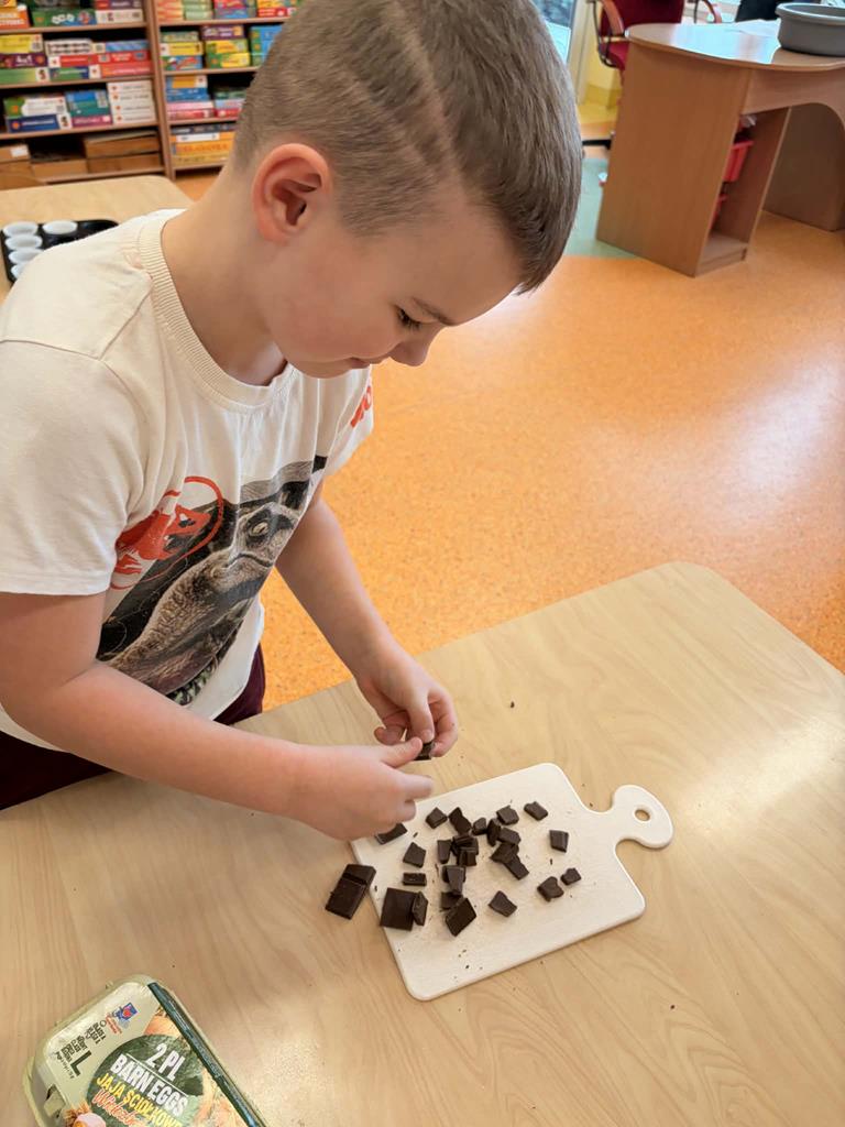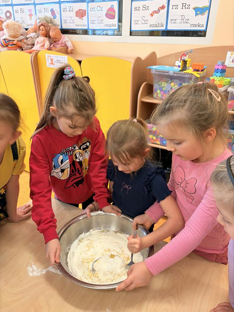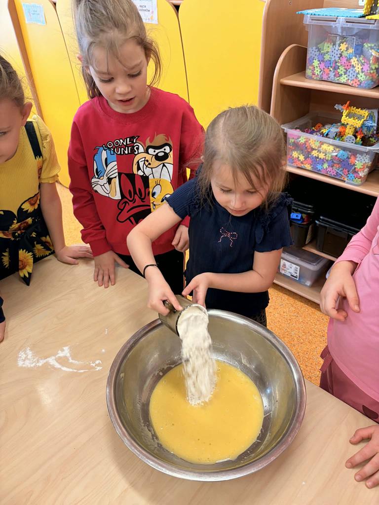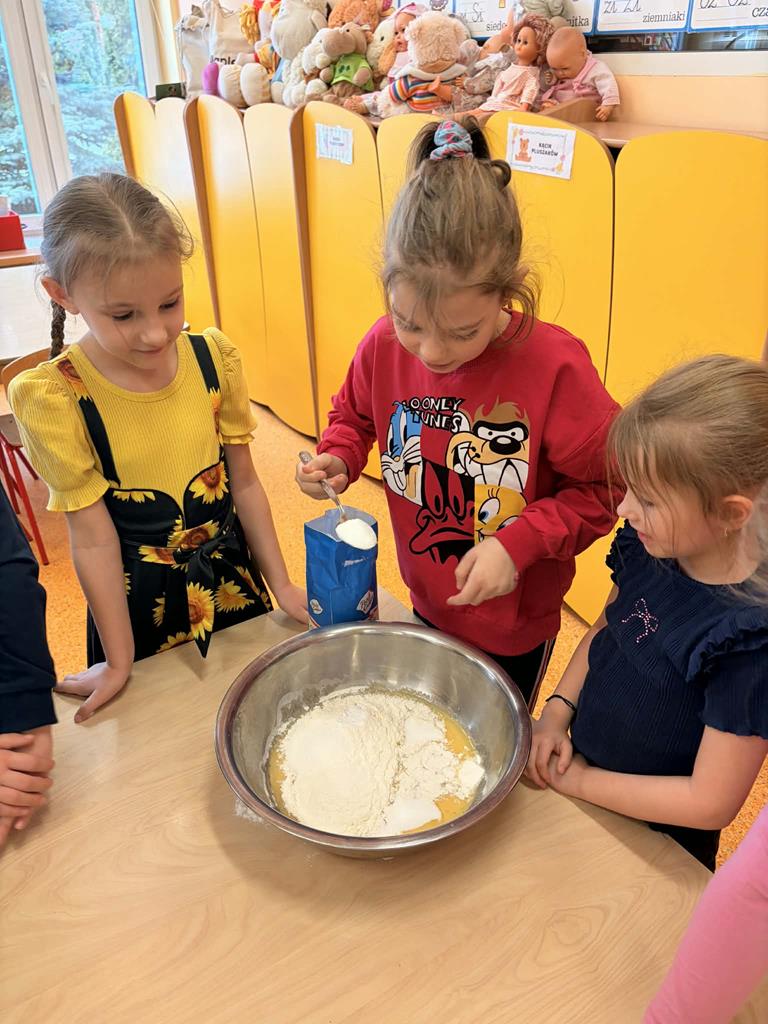 Dnia 6 lutego na zajęciach kulinarnych w grupie "Pszczółki" dzieci z wielkim zaangażowaniem przygotowały pyszne babeczki bananowe z kawałkami czekolady. Mali kucharze samodzielnie rozgniatali banany, odmierzali składniki i mieszali ciasto, doskonaląc przy tym swoją motorykę małą oraz ucząc się cierpliwości. Najwięcej radości sprawiło dzieciom dodawanie czekoladowych drobinek, które stały się „wisienką na torcie” naszych wypieków.