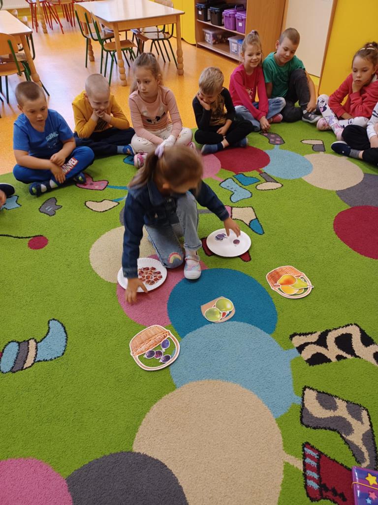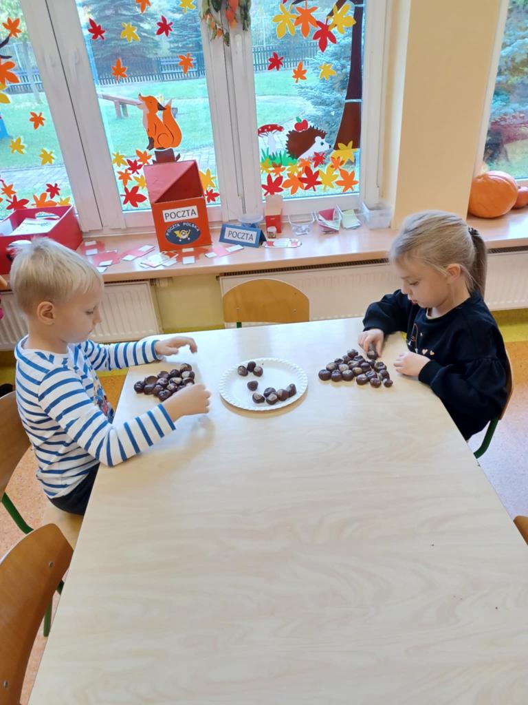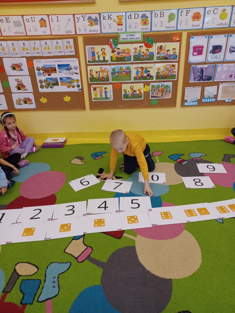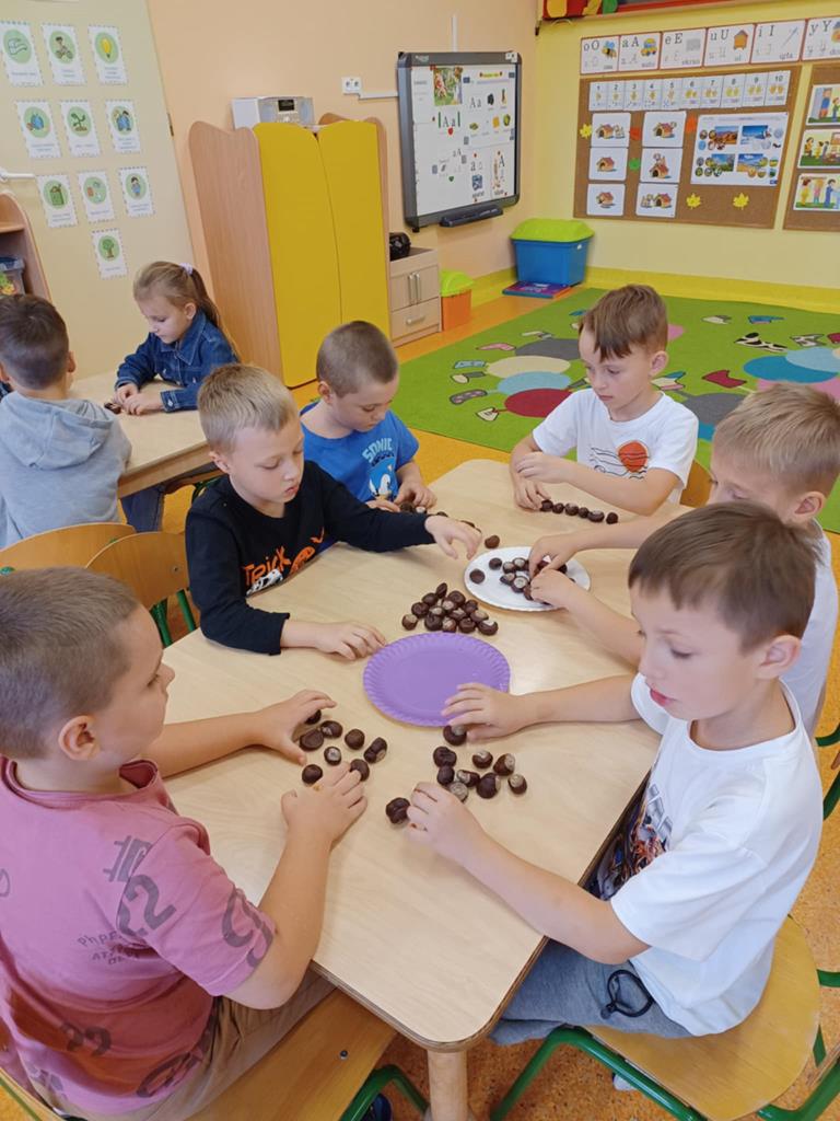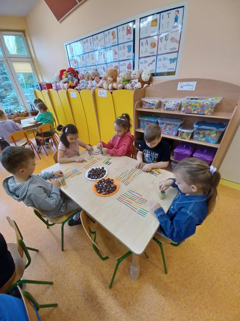 Przedszkolaki z gr. Pszczółki dnia 15.10.2025. na zajęciach doskonaliły swe umiejętności matematyczne. Dzieci budowały szeregi wg wzrastającej lub malejącej liczby elementów