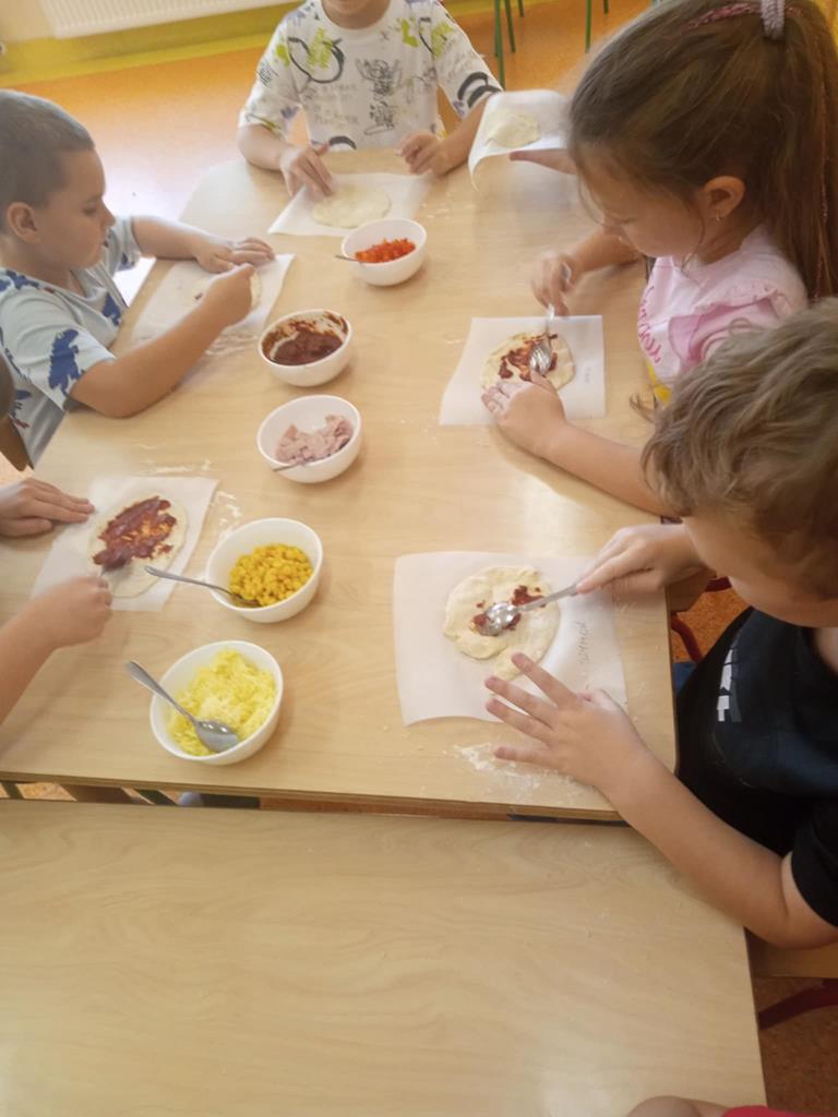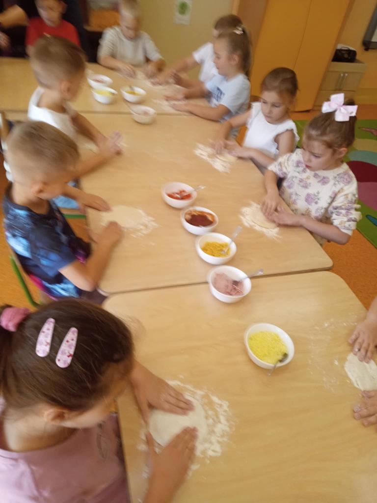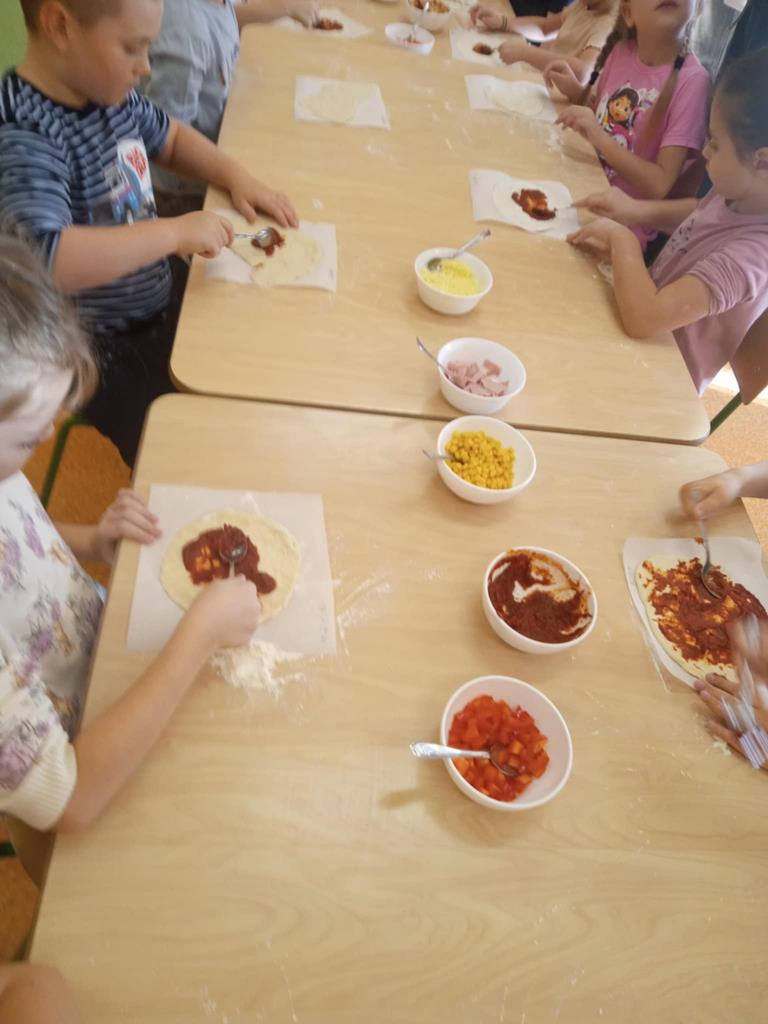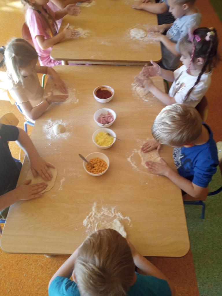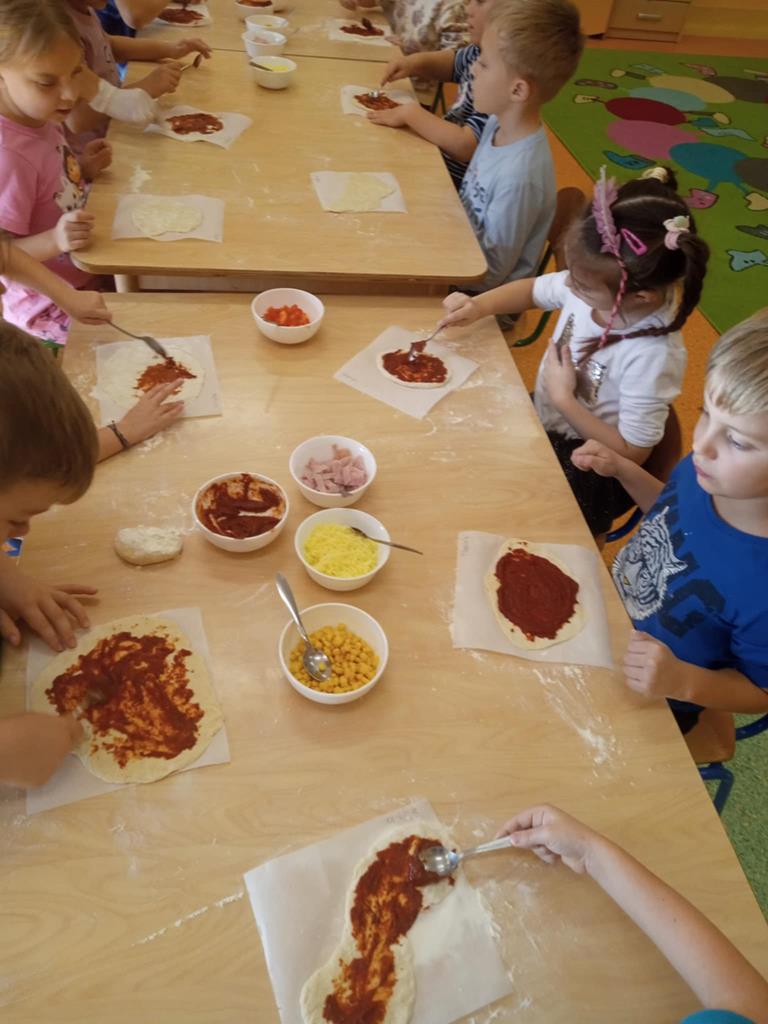 Dnia 29 października dzieci z grupy Pszczółek przygotowywały na zajęciach kulinarnych pizzę. Dzieci dowiedziały się jakie są niezbędne składniki do przygotowania ciasta. Samodzielnie wyrabiały ciasto i komponowały własne kompozycje smakowe a na koniec wspólnie zjadły swoje dzieła. Zajęcia z robienia pizzy w przedszkolu to doskonała okazja do nauki przez zabawę, która rozwijała zdolności manualne, społeczne a także promowała zdrowe nawyki żywieniowe.
