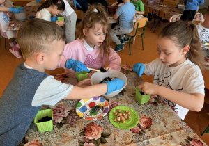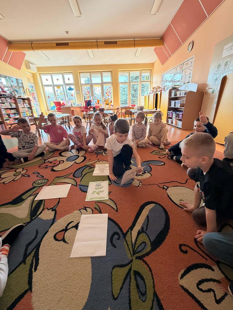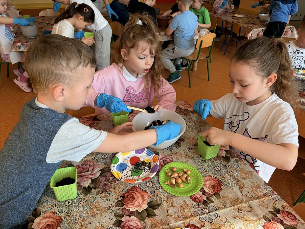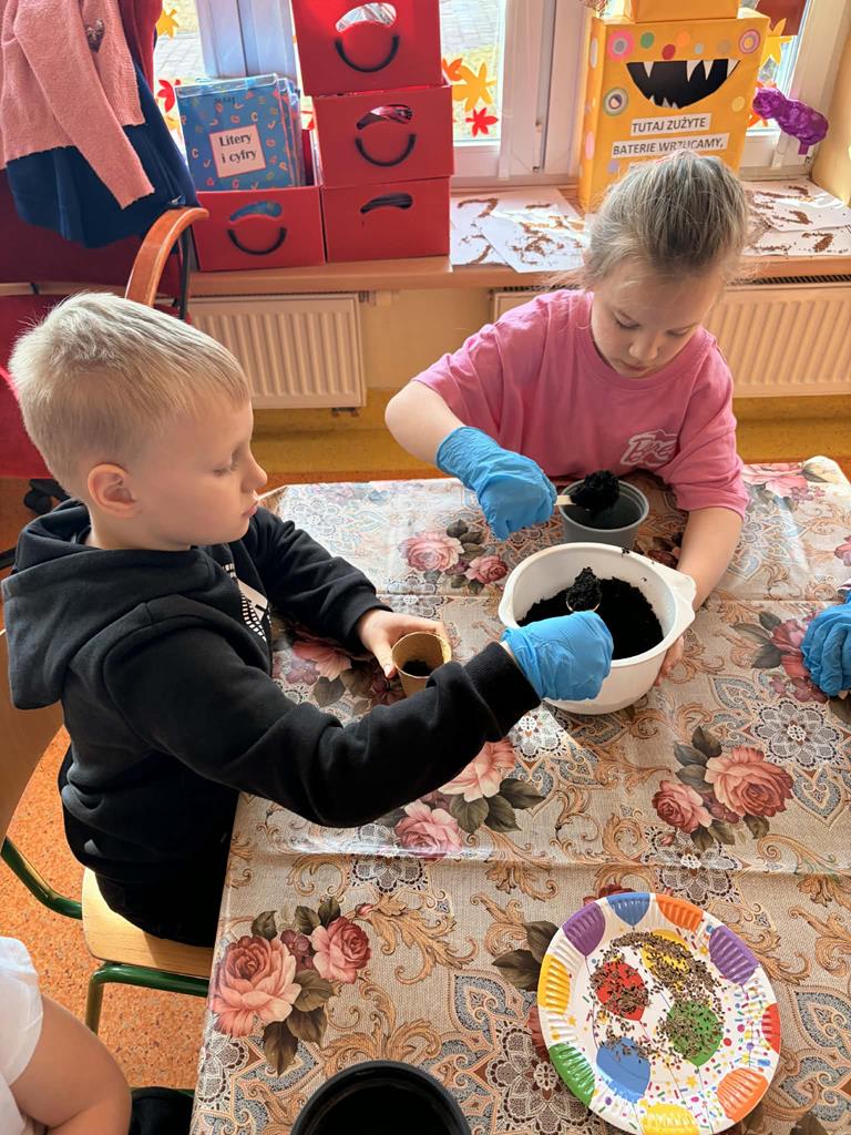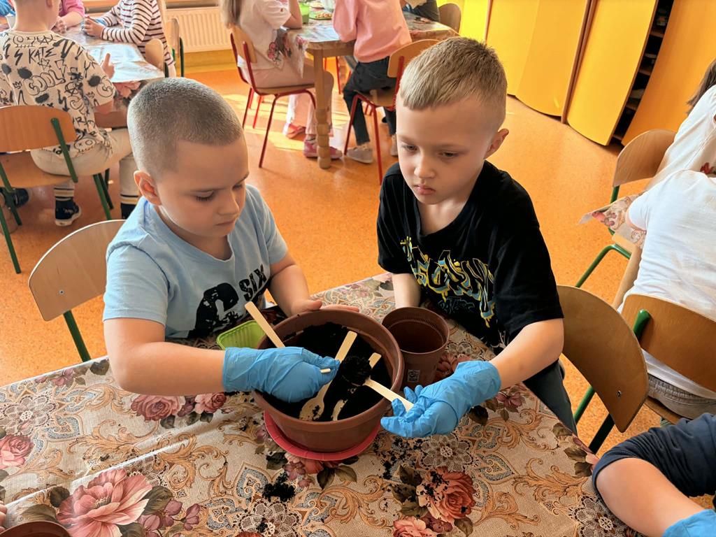 Dnia 24 marca Pszczółki na zajęciach poznały etapy wzrostu roślin. Na początku dzieci obejrzały film edukacyjny "Jak rosną rośliny?", po czym przedszkolaki samodzielnie układały historyjkę obrazkową „od ziarenka do rośliny” oraz wspólnie ustały czego rośliny potrzebują do życia. Następnie dzieci, wykorzystując lupy oraz zmysły dotyku i zapachu, rozpoznawały nasiona i cebulki, dopasowując do nich odpowiednie podpisy. Najwięcej radości sprawiło dzieciom działanie praktyczne – wspólne założenie ogródka w sali. Dzieci z dużym zaangażowaniem siały szczypiorek, bazylię oraz fasolę, a także sadziły cebulę. Teraz będą wspólnie dbać o swoje uprawy i prowadzić codzienne obserwacje ich wzrostu.