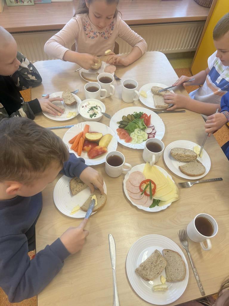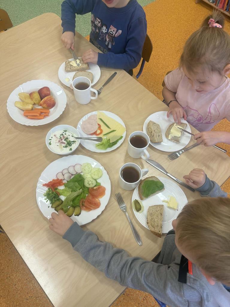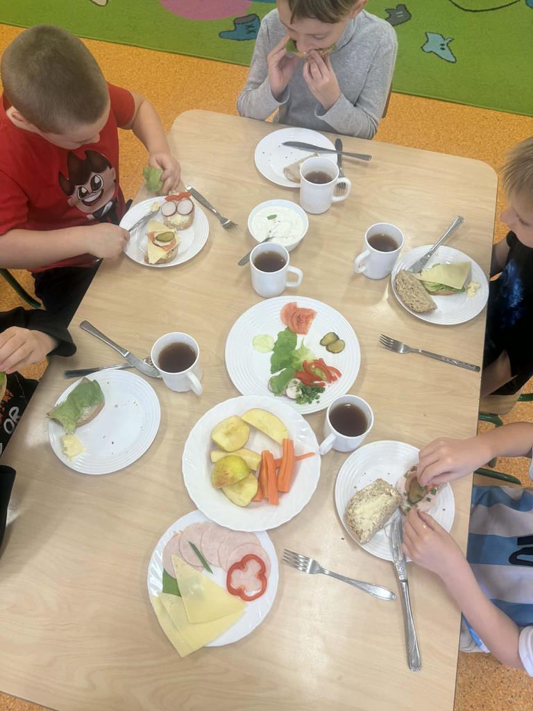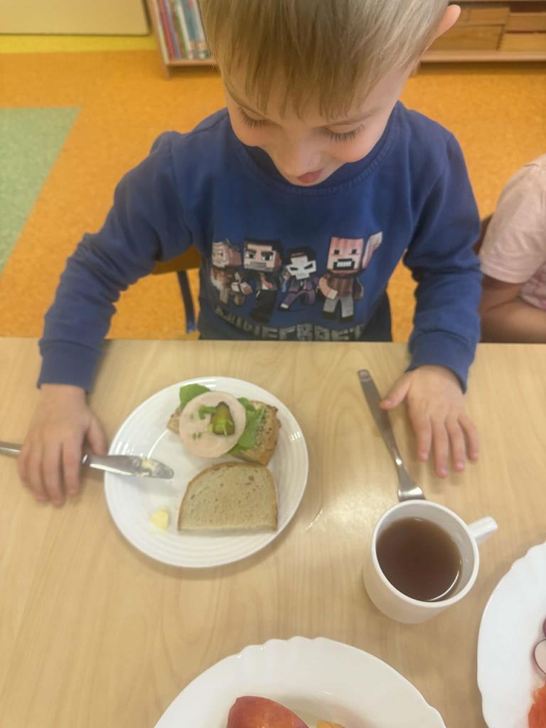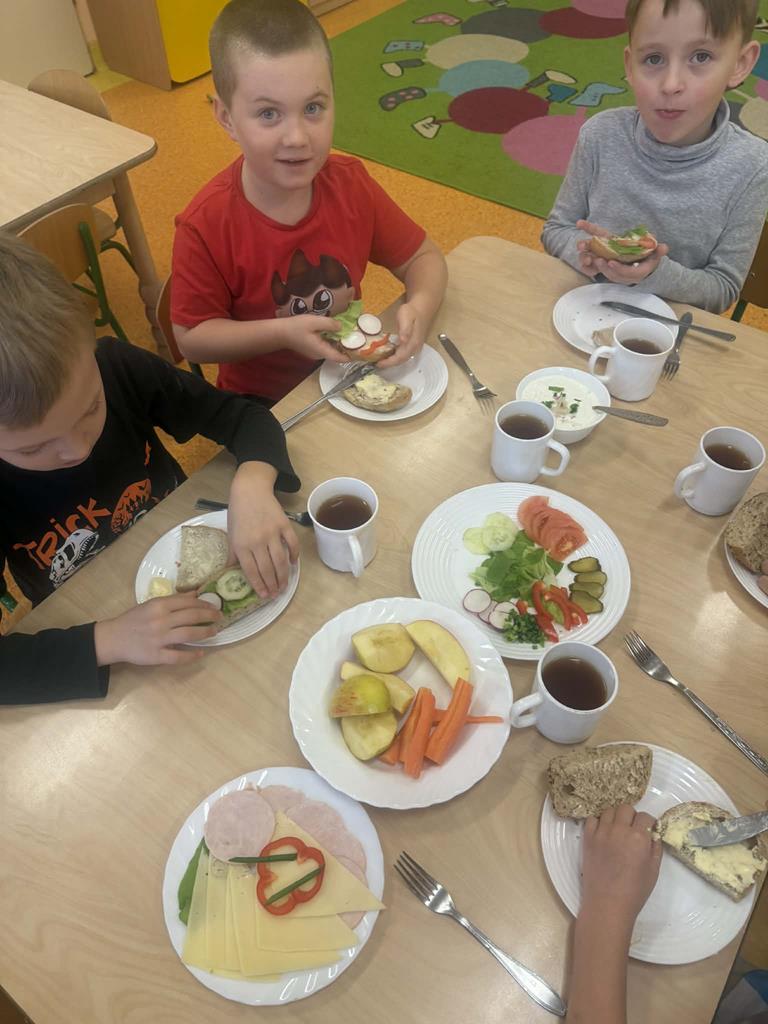 Dzieci z grupy Pszczółek dnia 27.11.2025r. samodzielnie przygotowały swoje zdrowe, kolorowe kanapki z przygotowanych produktów. Mogły samodzielnie podjąć decyzję z czym chcą zjeść kanapkę co sprawiło im olbrzymią radość ale także był to pretekst do rozmowy o zdrowym odżywianiu.