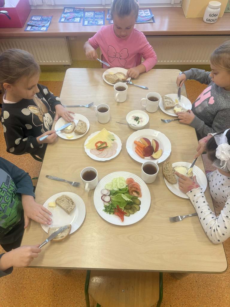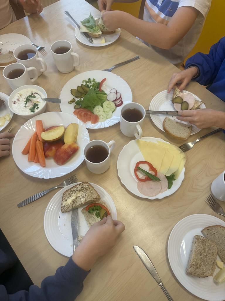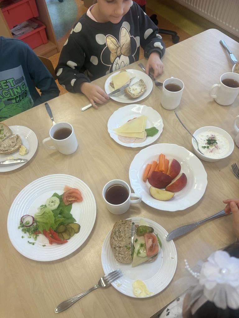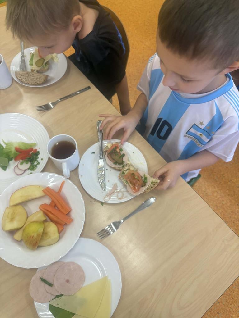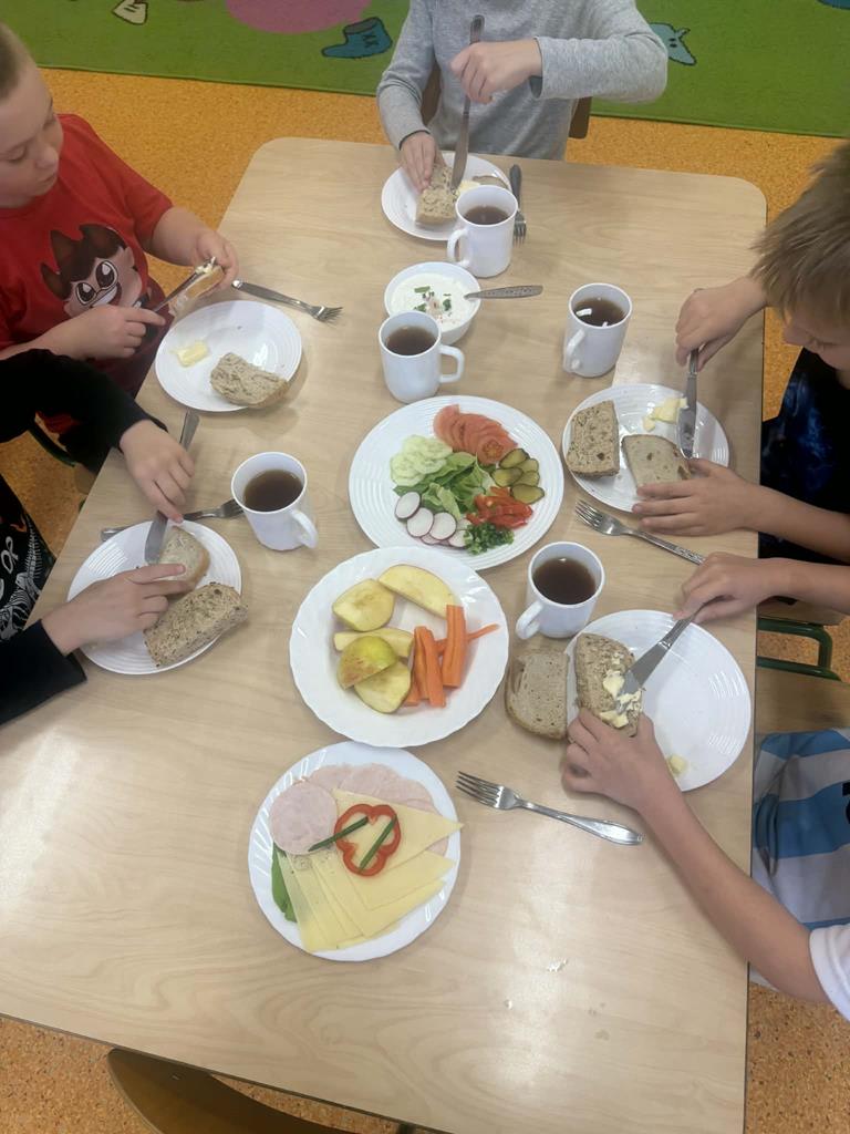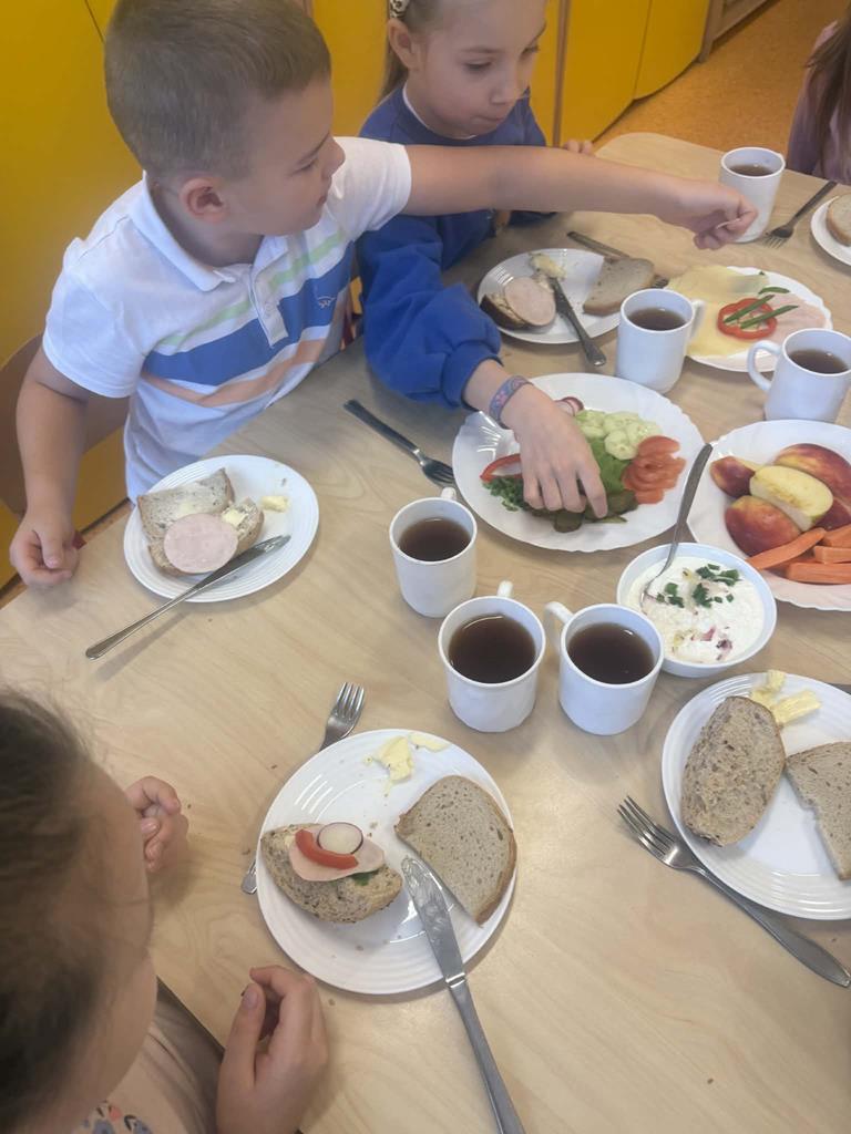 Dzieci z grupy Pszczółek dnia 27.11.2025r. samodzielnie przygotowały swoje zdrowe, kolorowe kanapki z przygotowanych produktów. Mogły samodzielnie podjąć decyzję z czym chcą zjeść kanapkę co sprawiło im olbrzymią radość ale także był to pretekst do rozmowy o zdrowym odżywianiu.